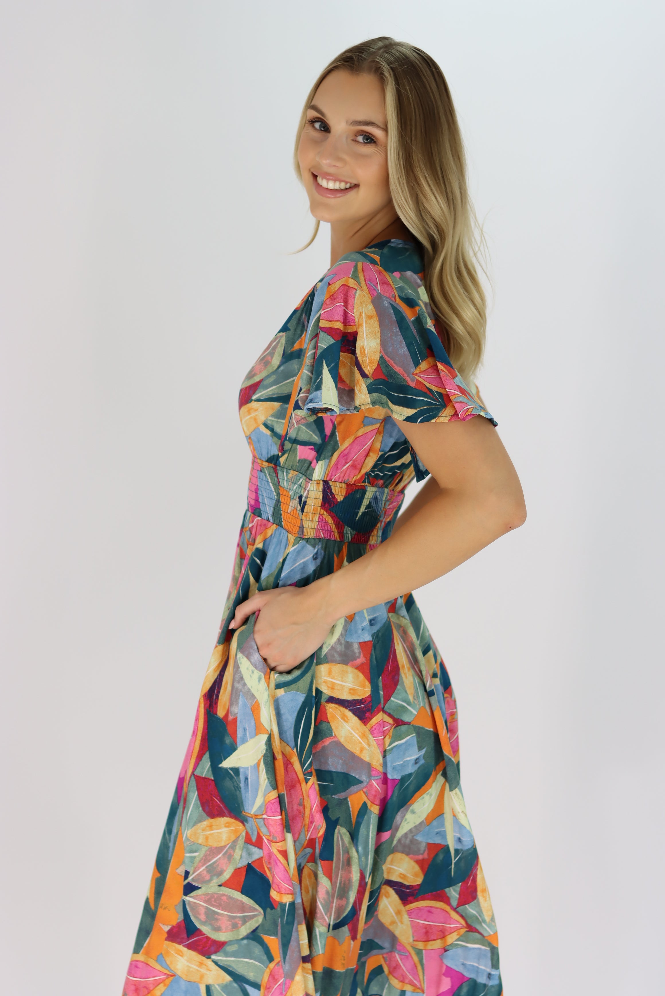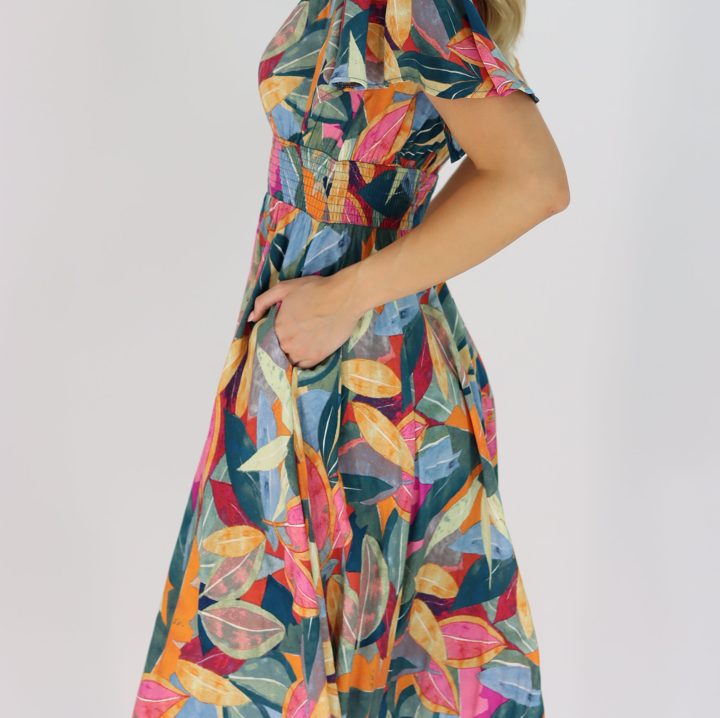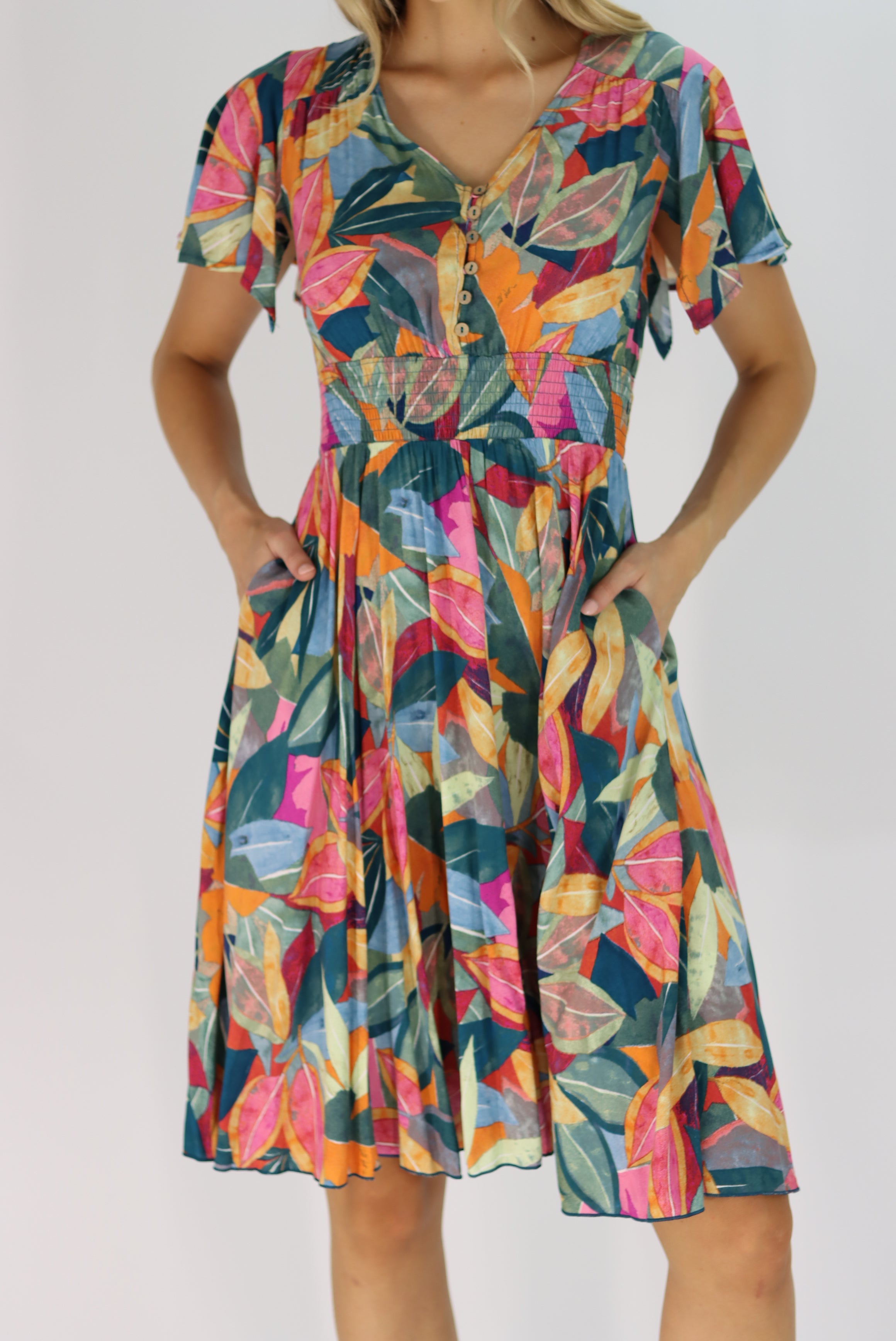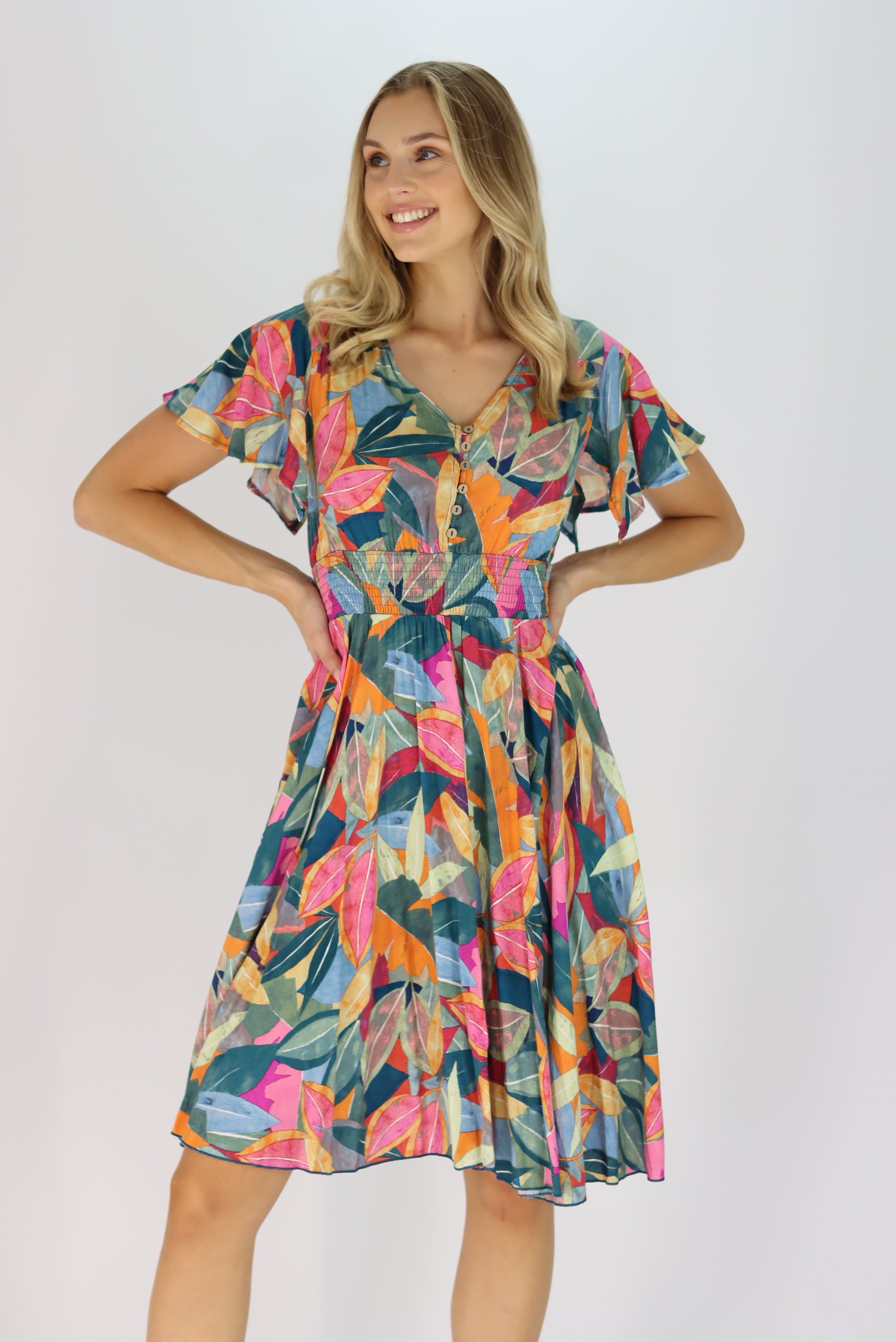 Anaya Multi Colour Leaf Dress