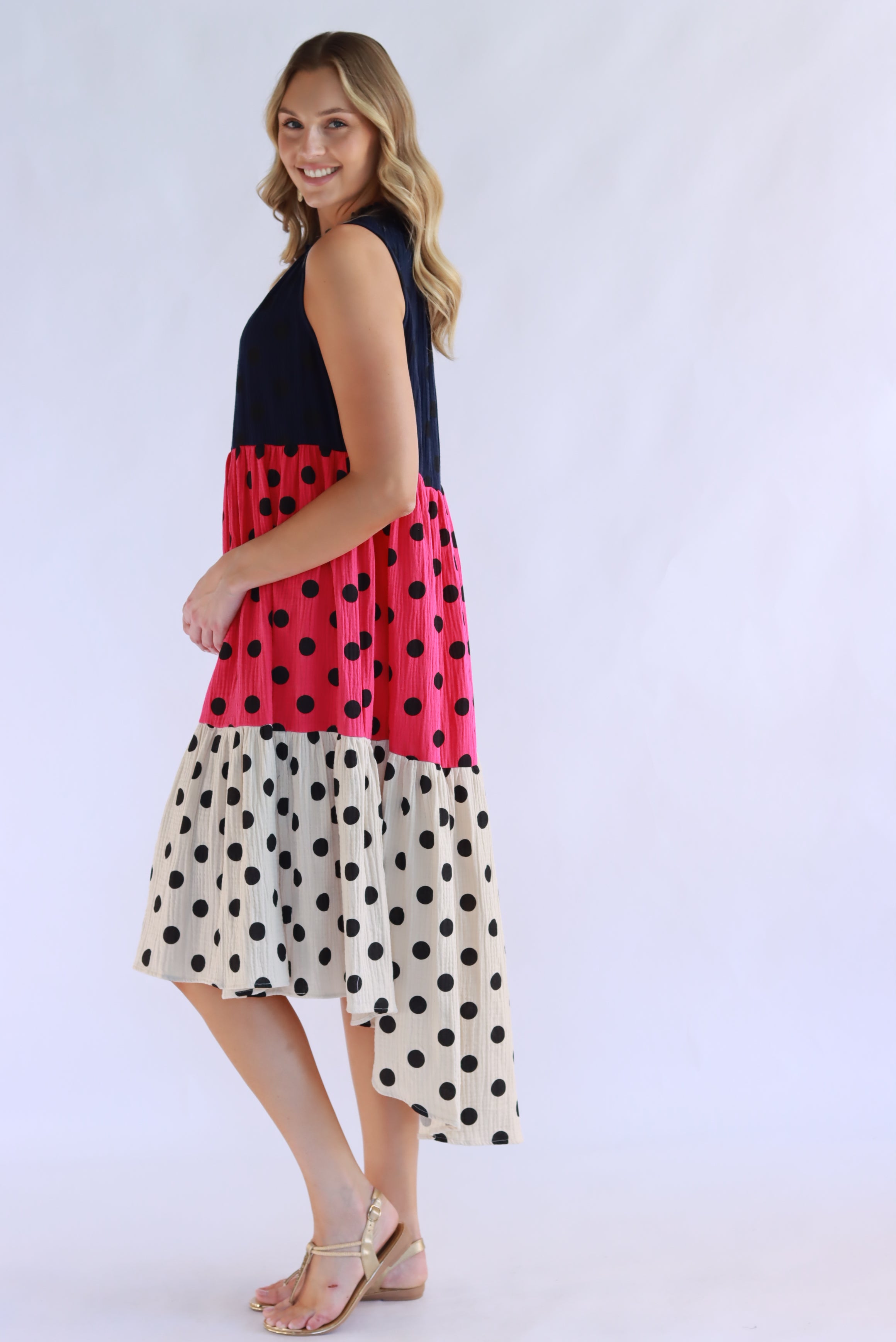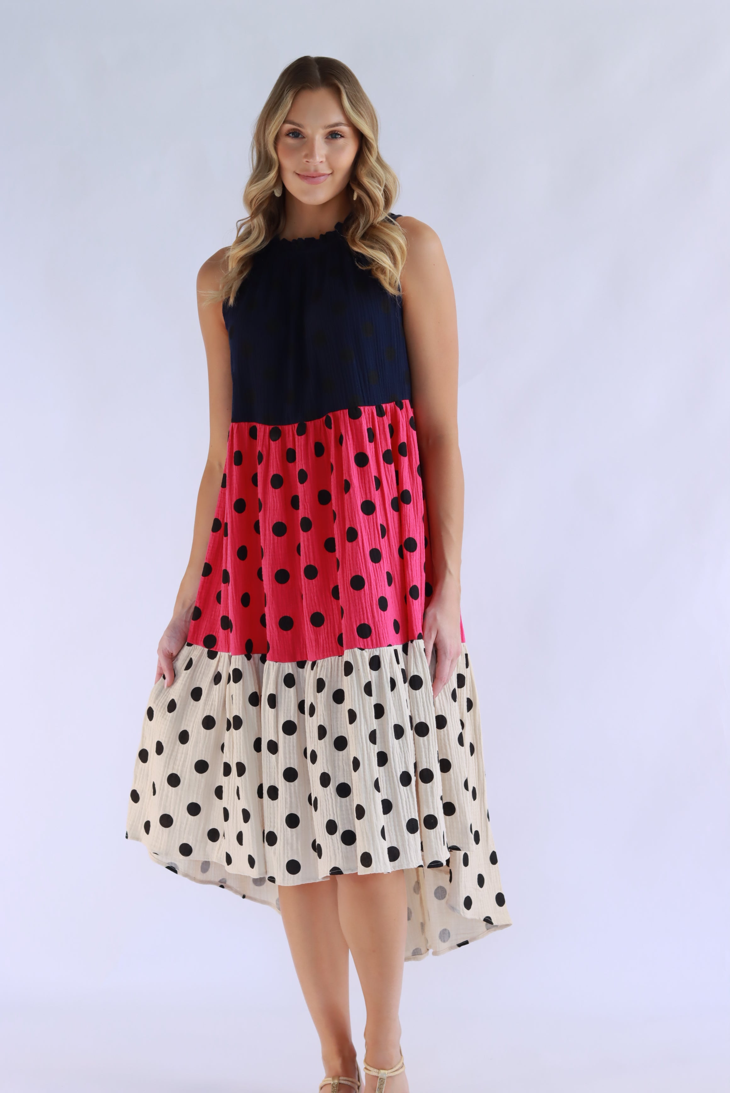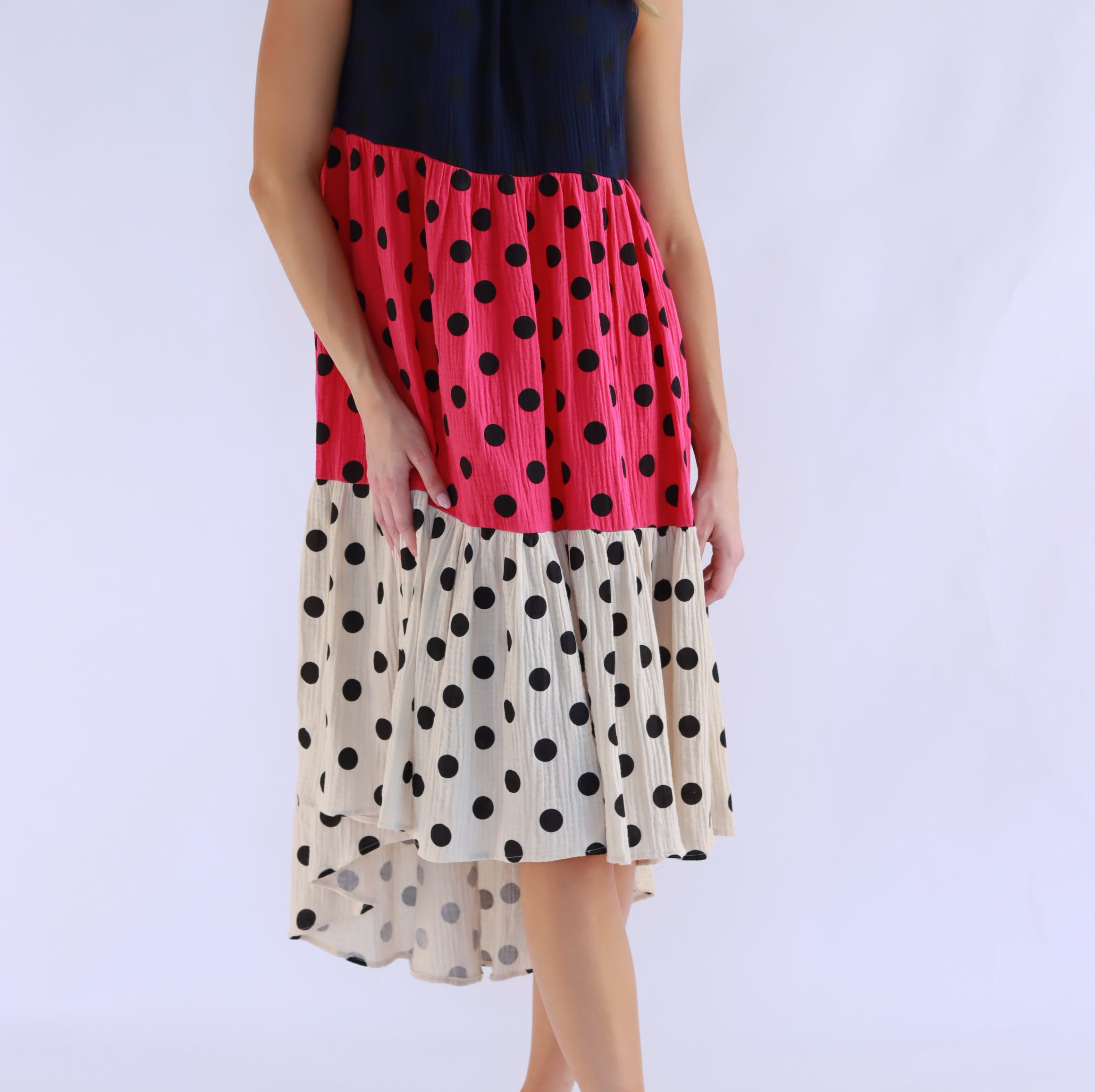 Symona Tri Polka Cotton Dress