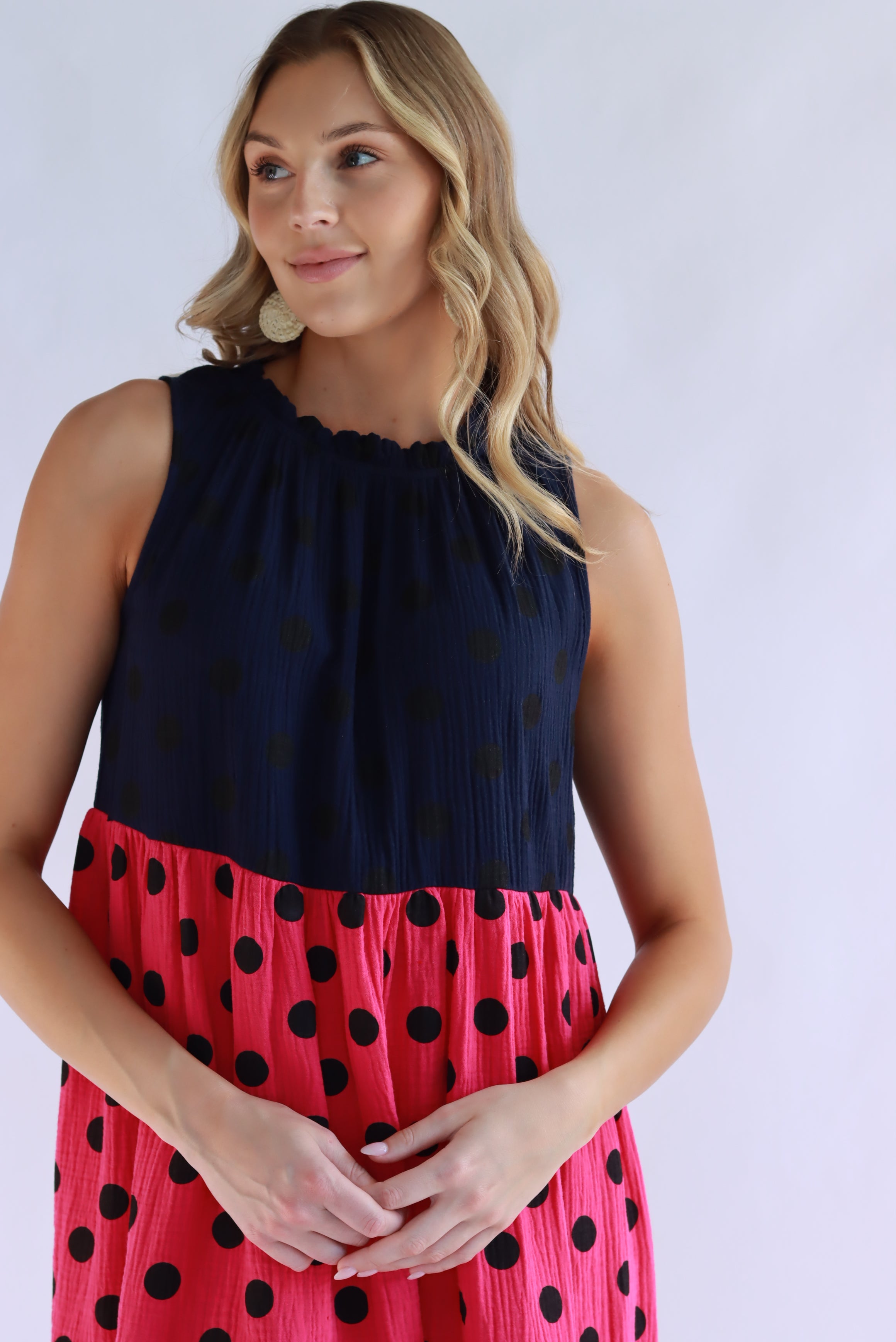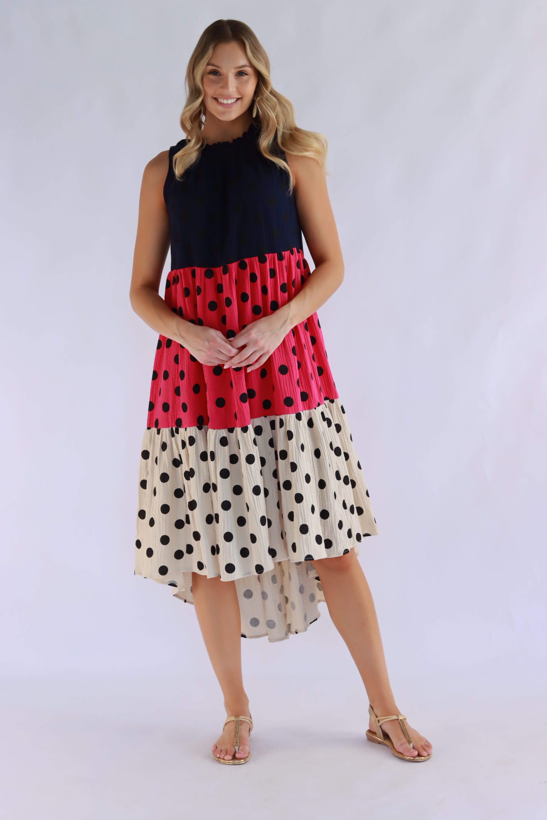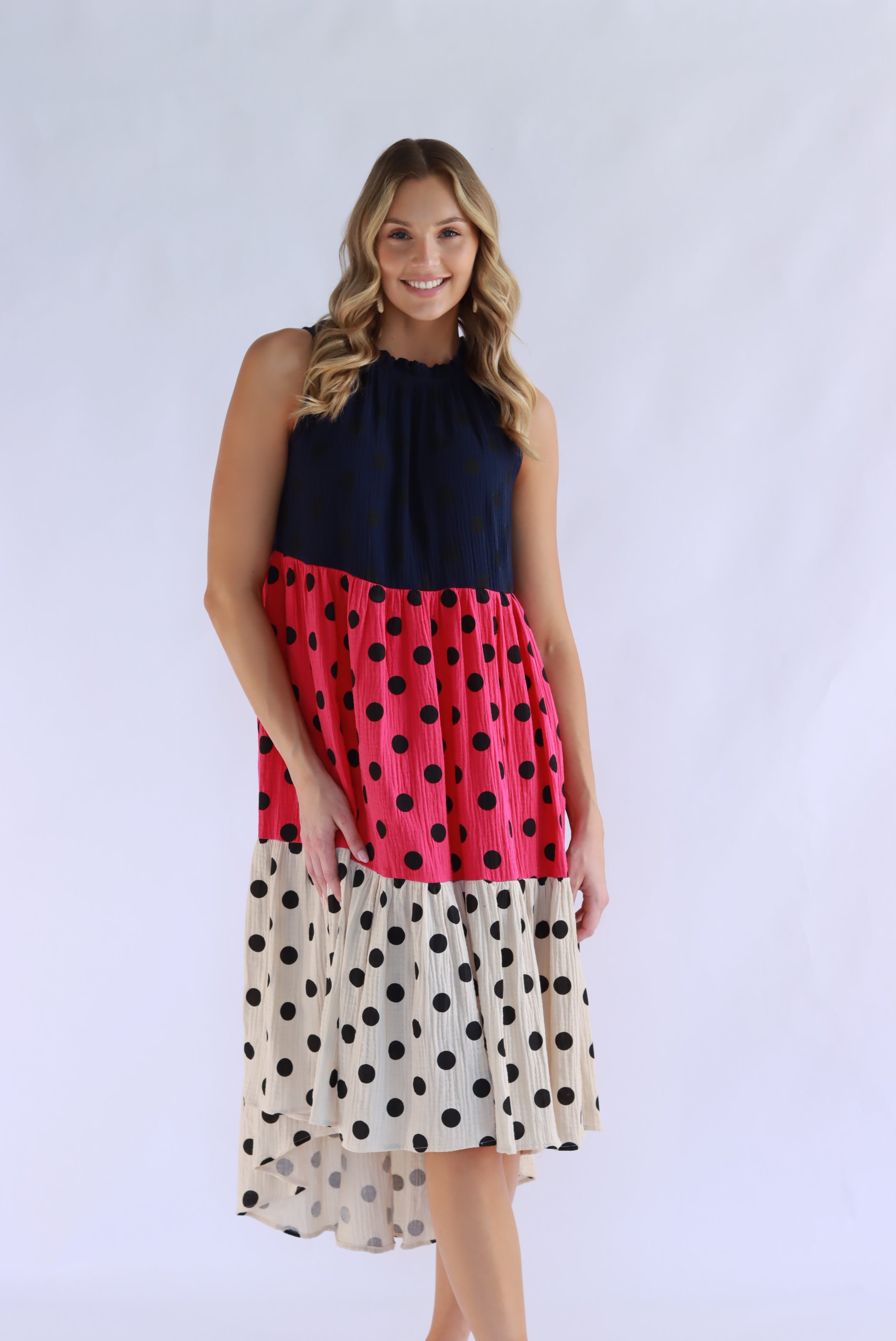 Symona Tri Polka Cotton Dress
