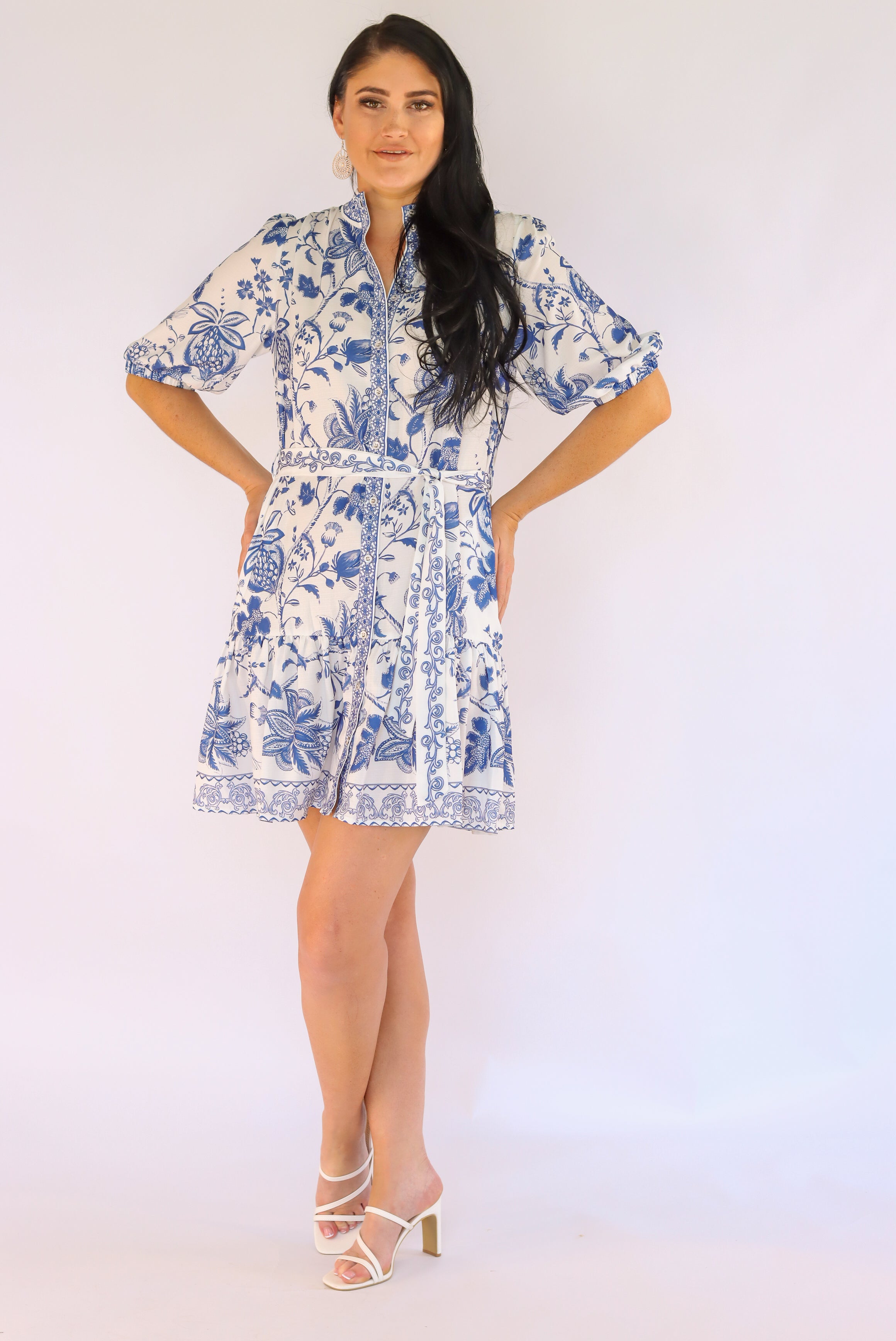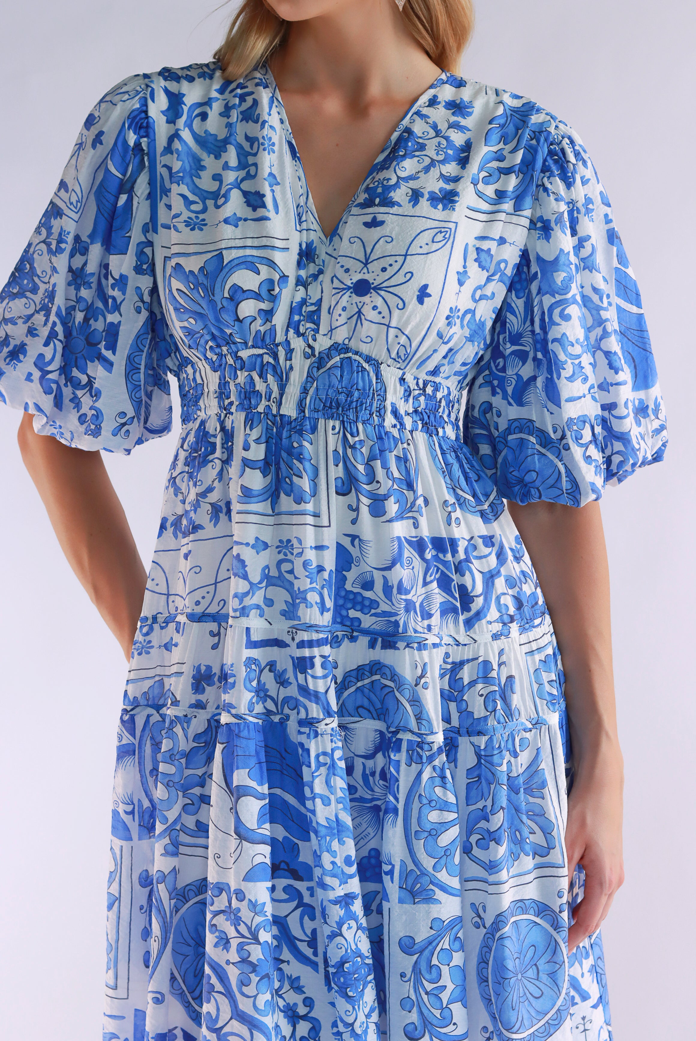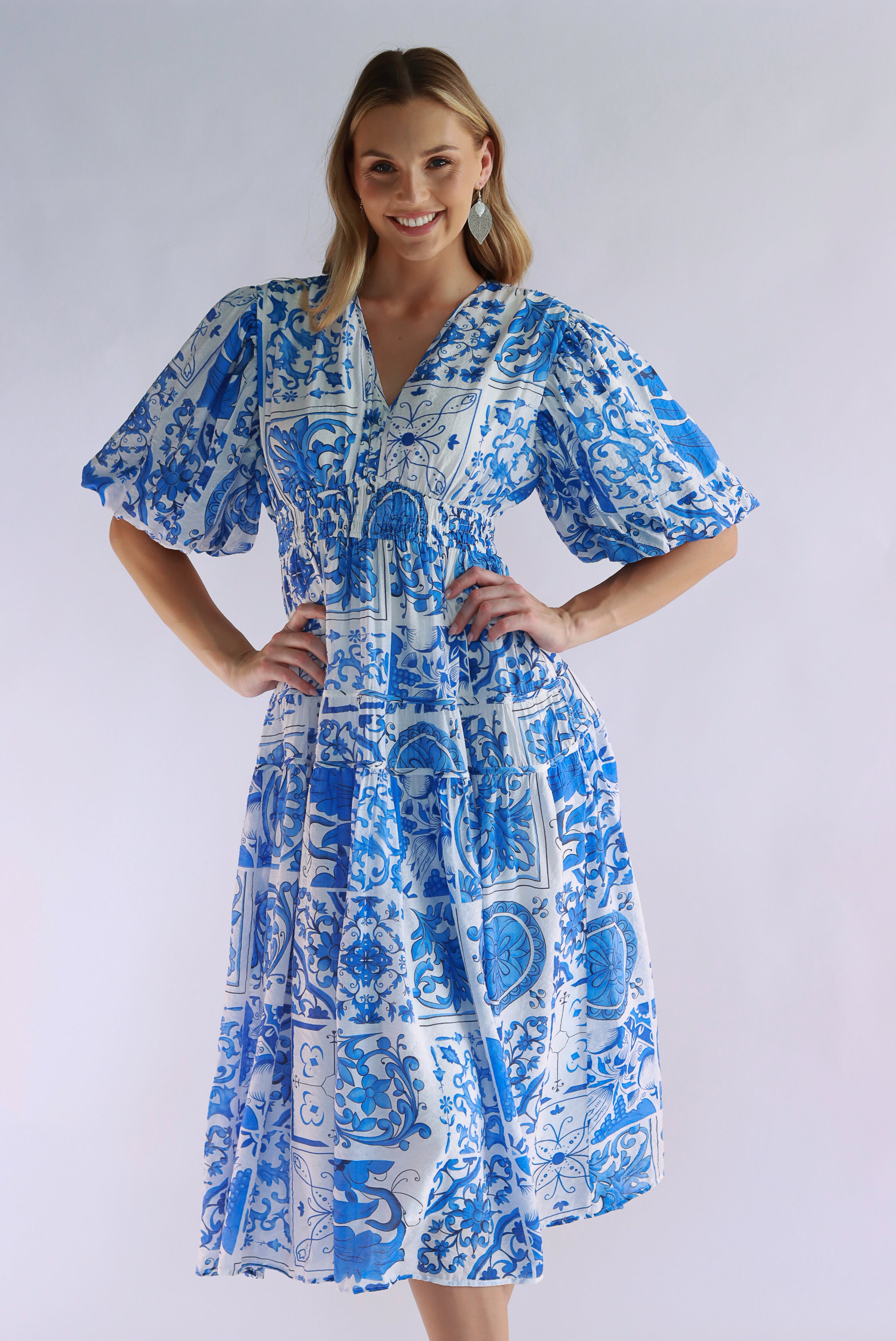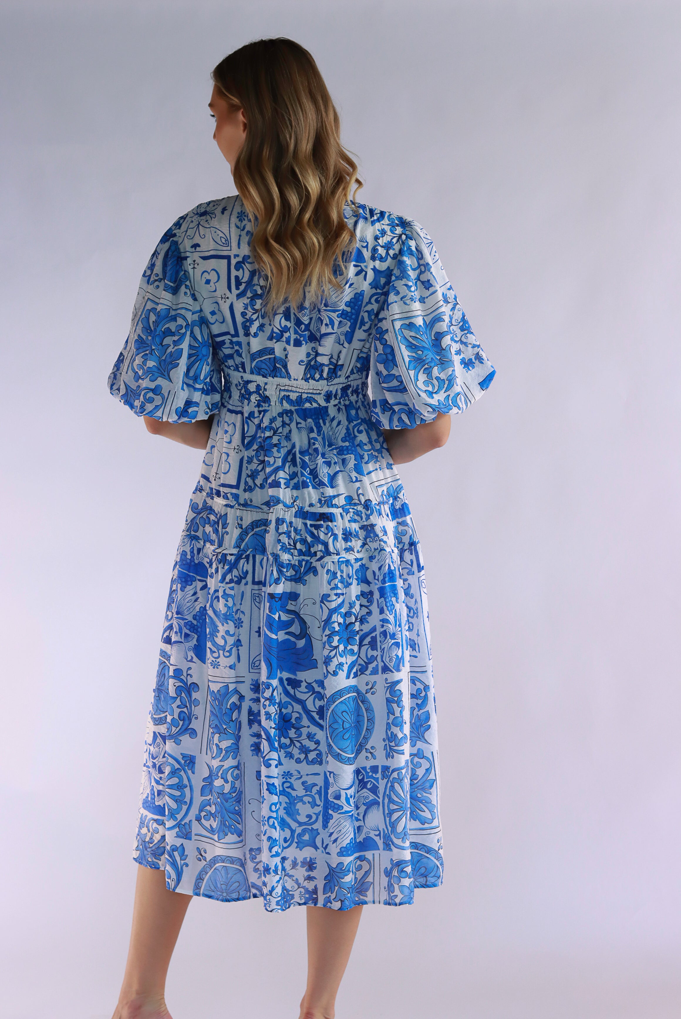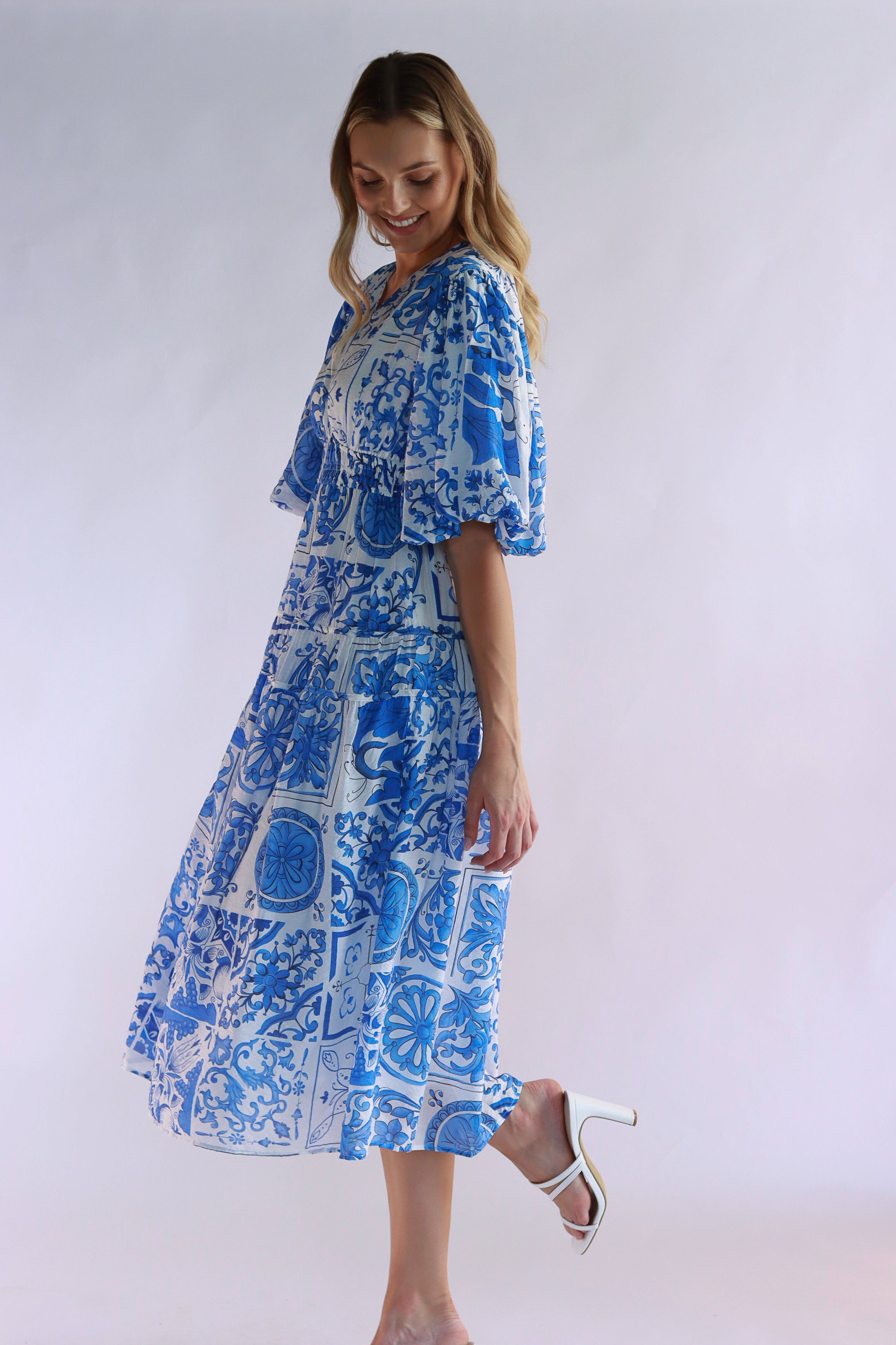 Foresta White Blue Midi Dress