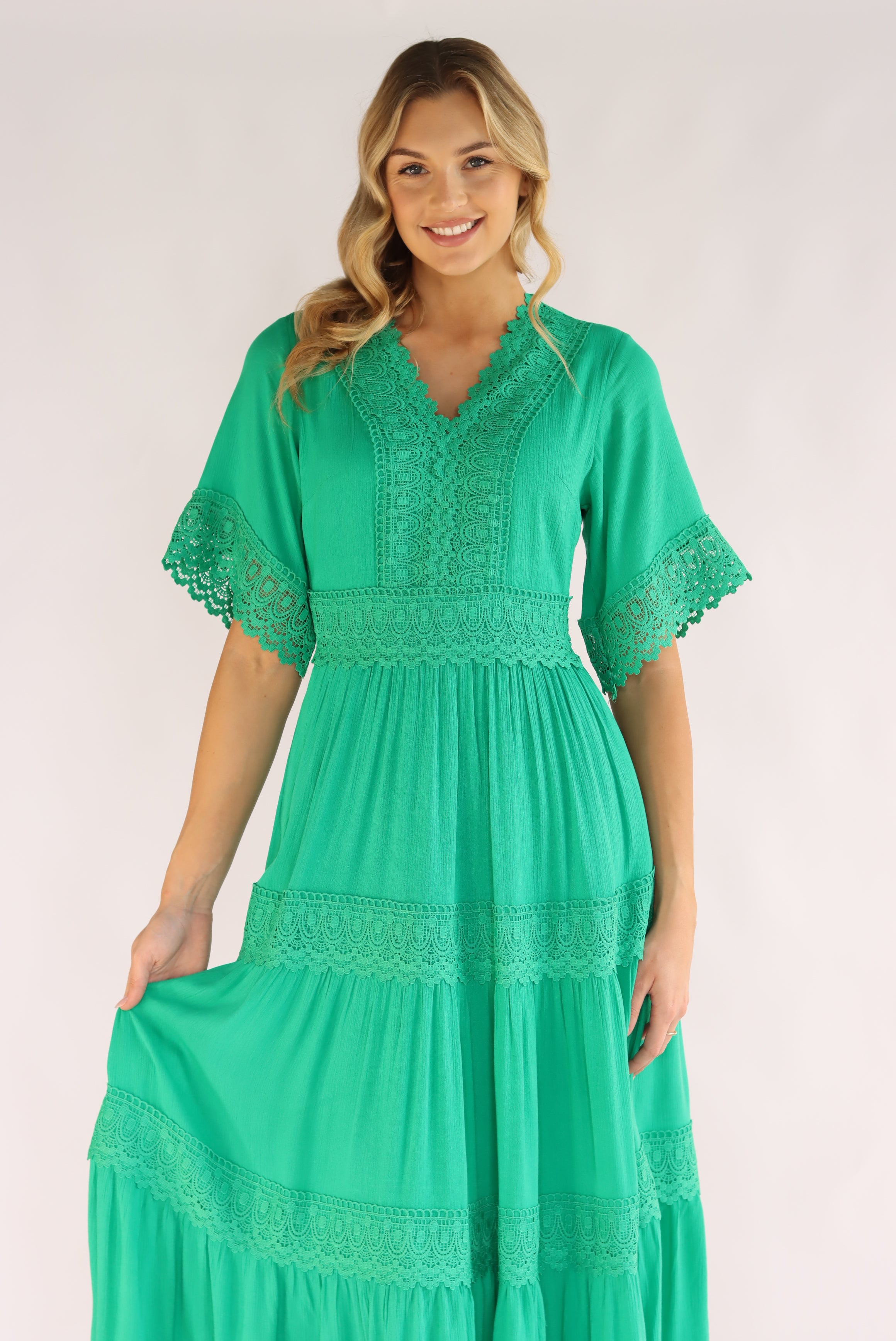 Lorinda Maxi Dress In Emerald Green
