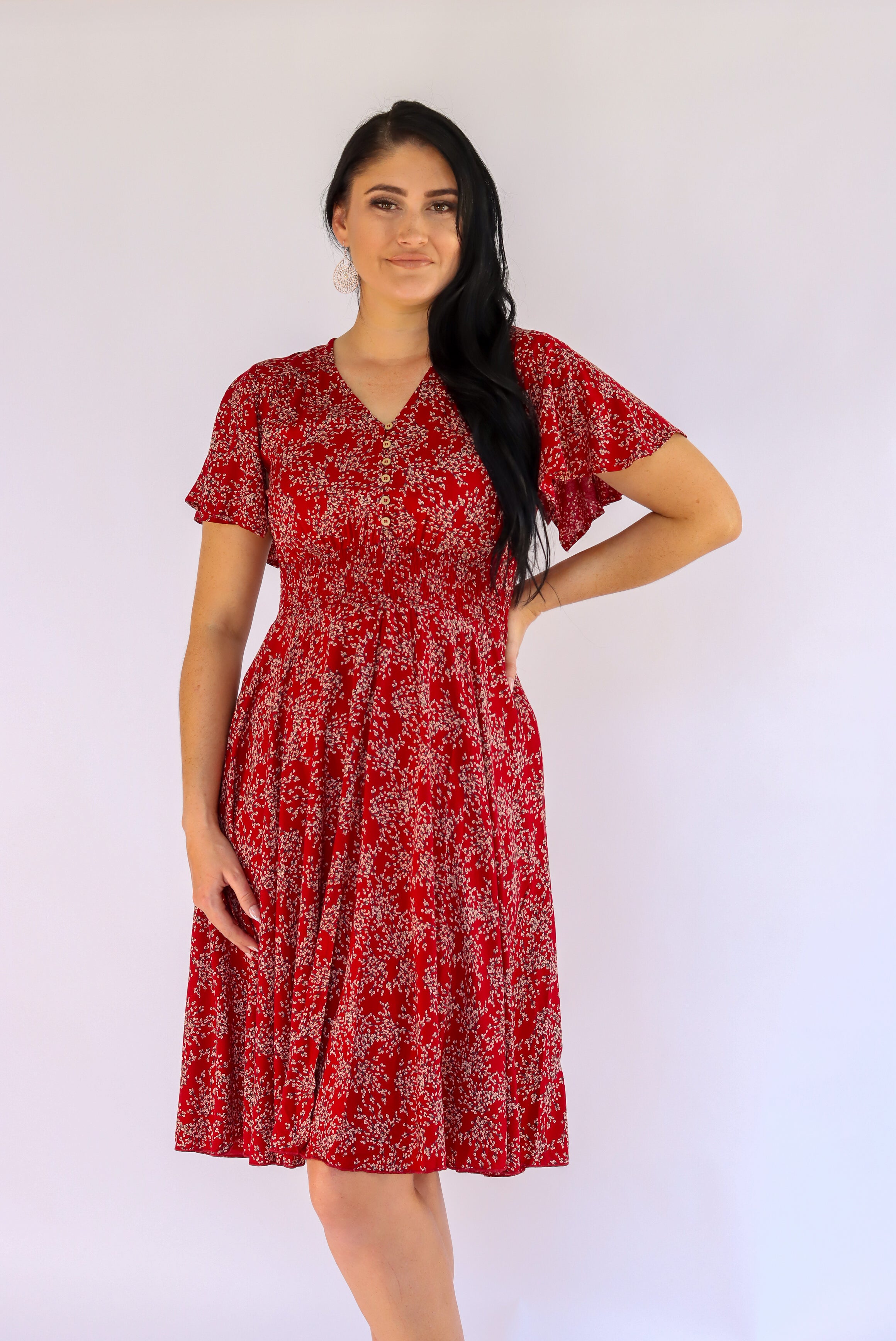 Lucia Floral Dress In Cherry Red