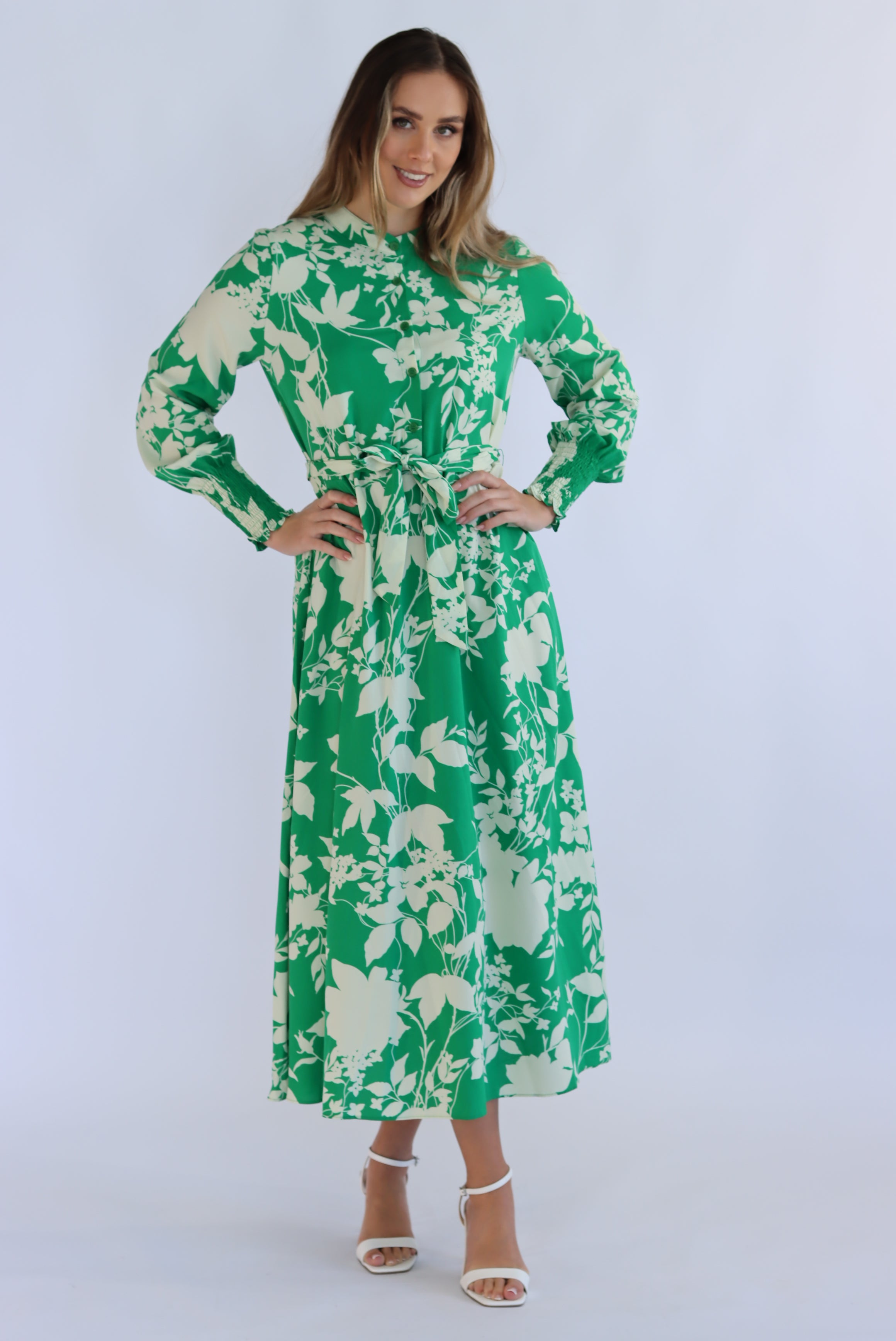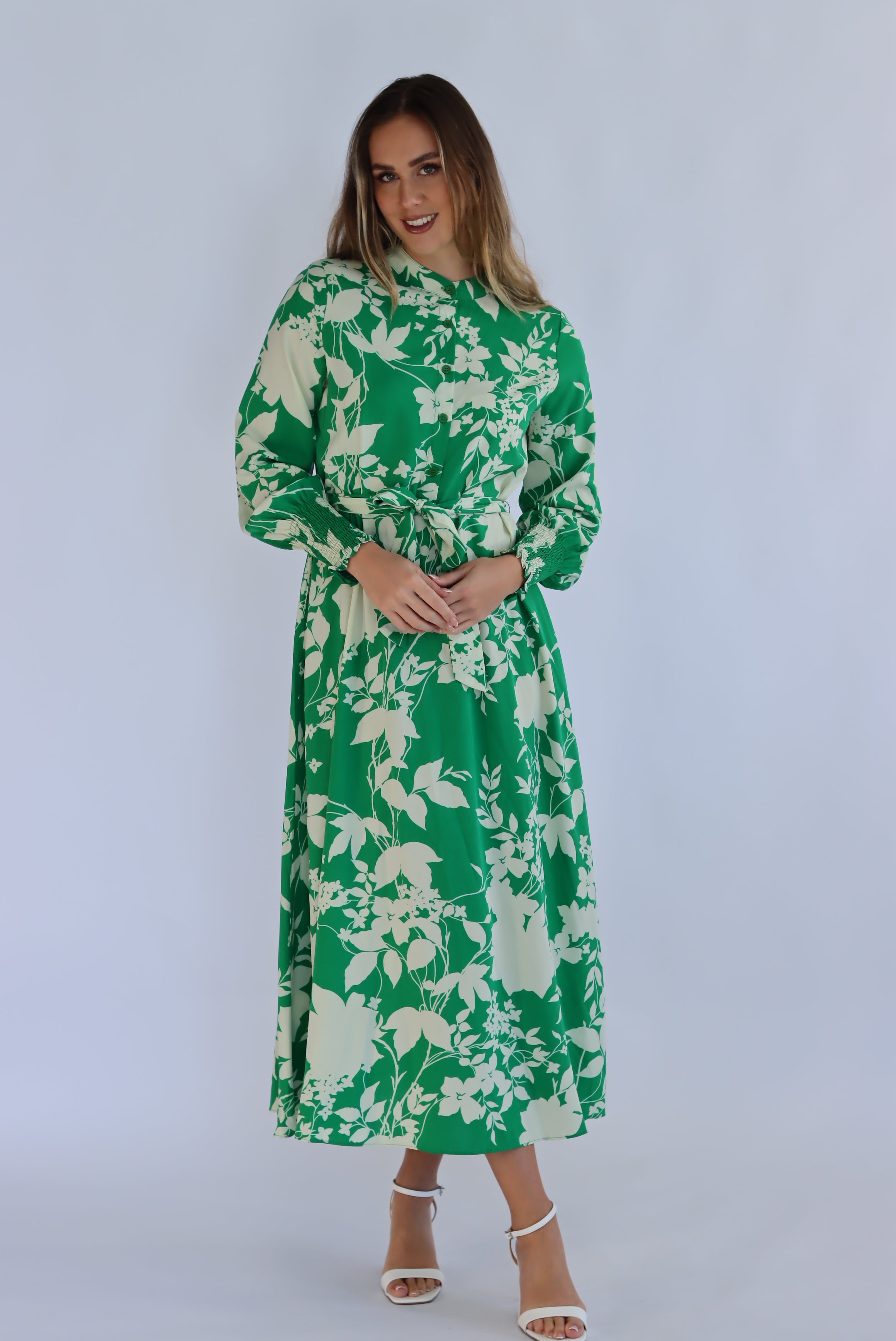 Expertly crafted for everyday wear or special occasions, the Arbella Dress in Green is a stunning addition to any wardrobe. With its maxi style and full sleeves, this dress exudes elegance and sophistication. Make a statement with the Arbella Dress and feel confident in its flawless design.
