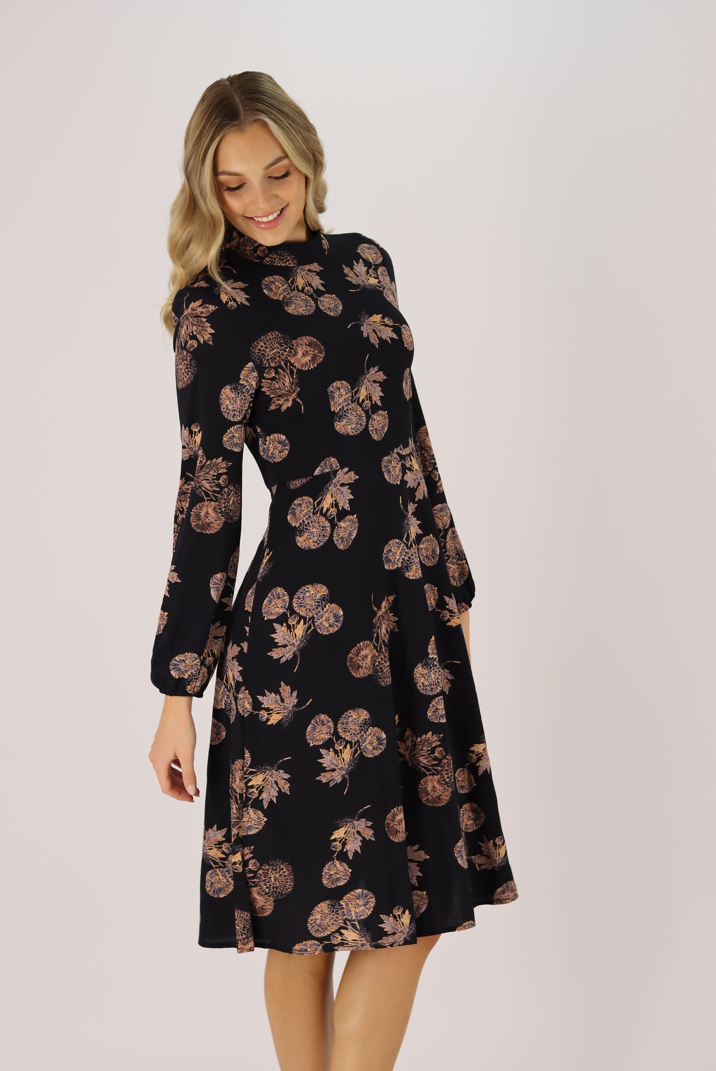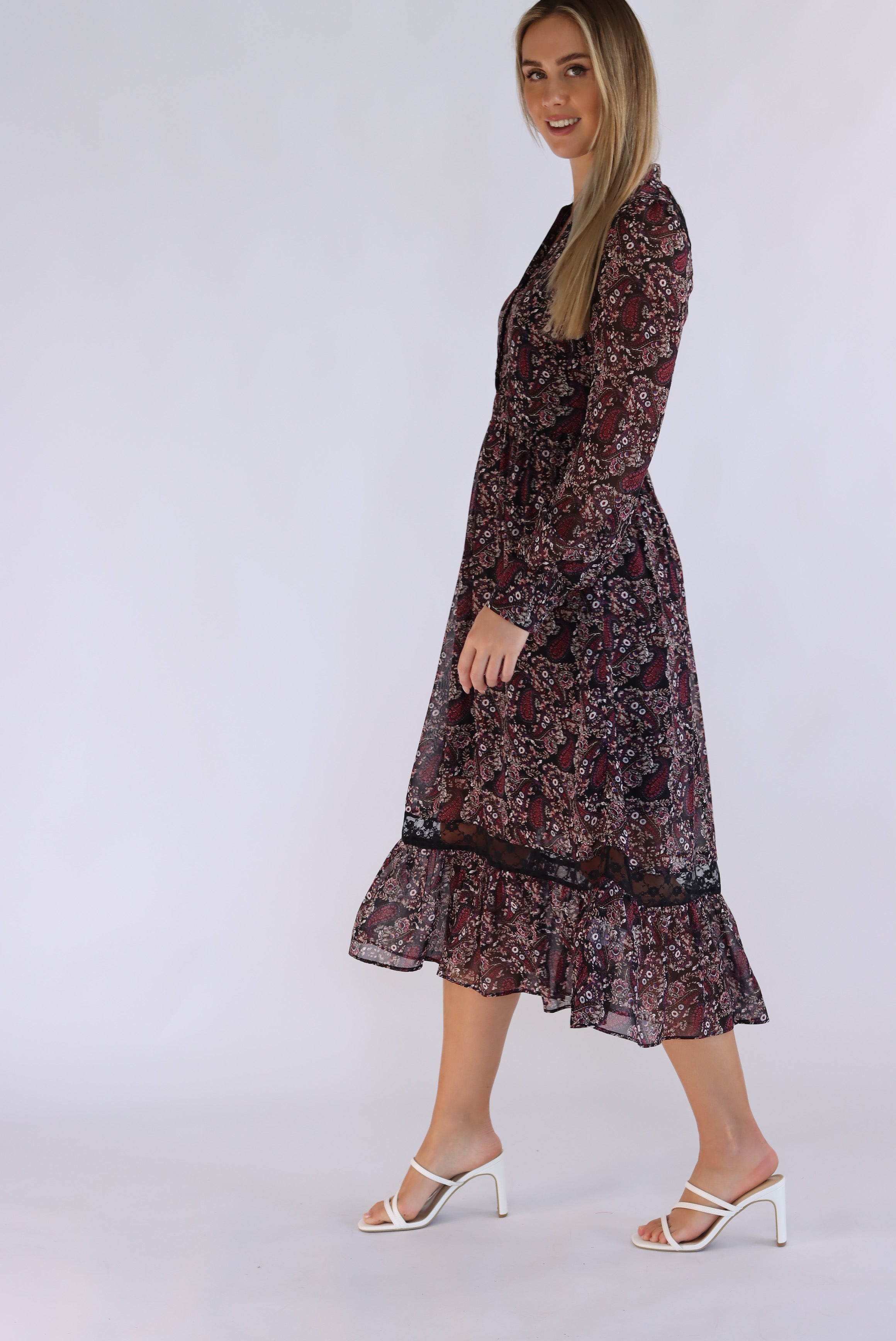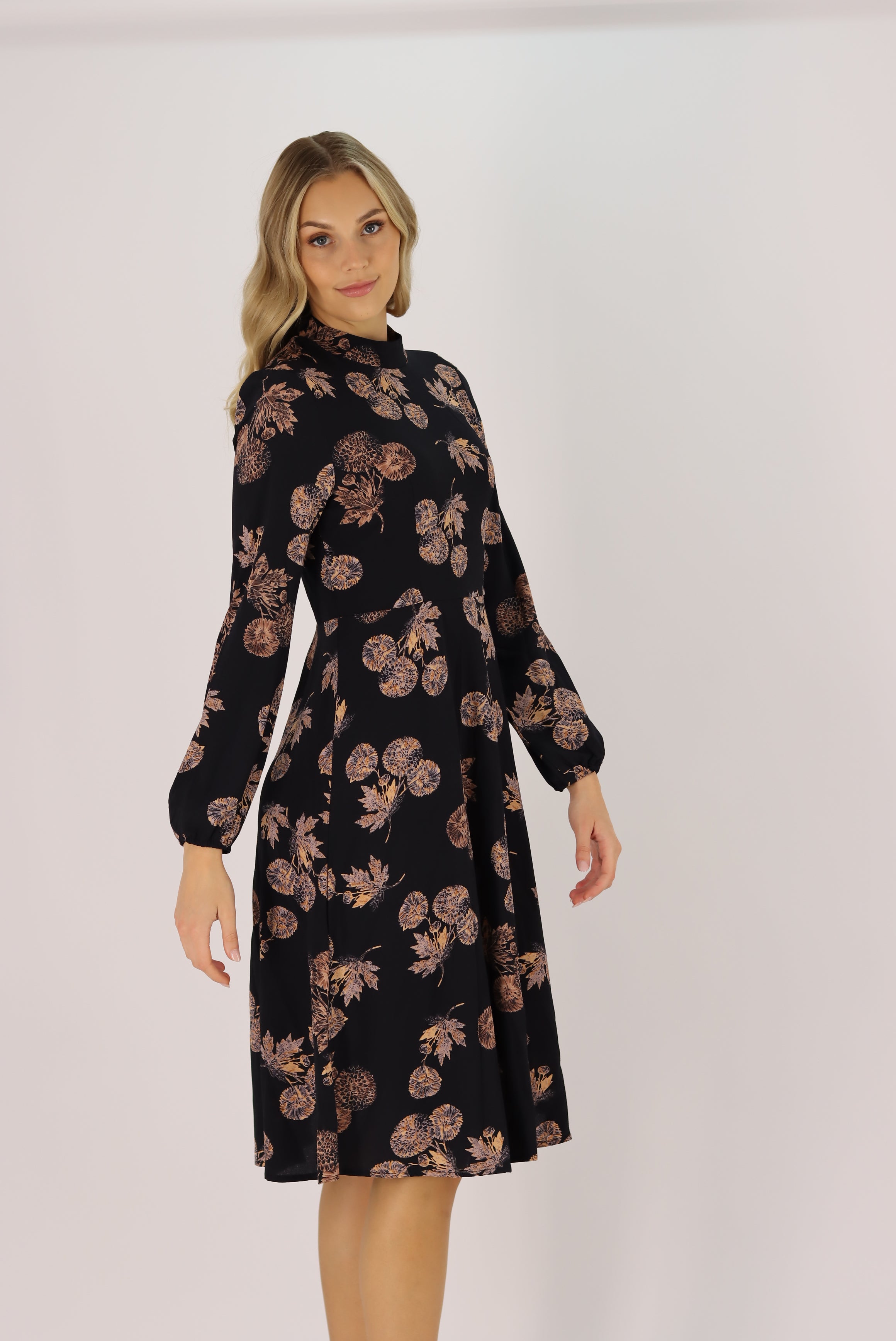 Diona Full-Sleeve Floral Midi Dress