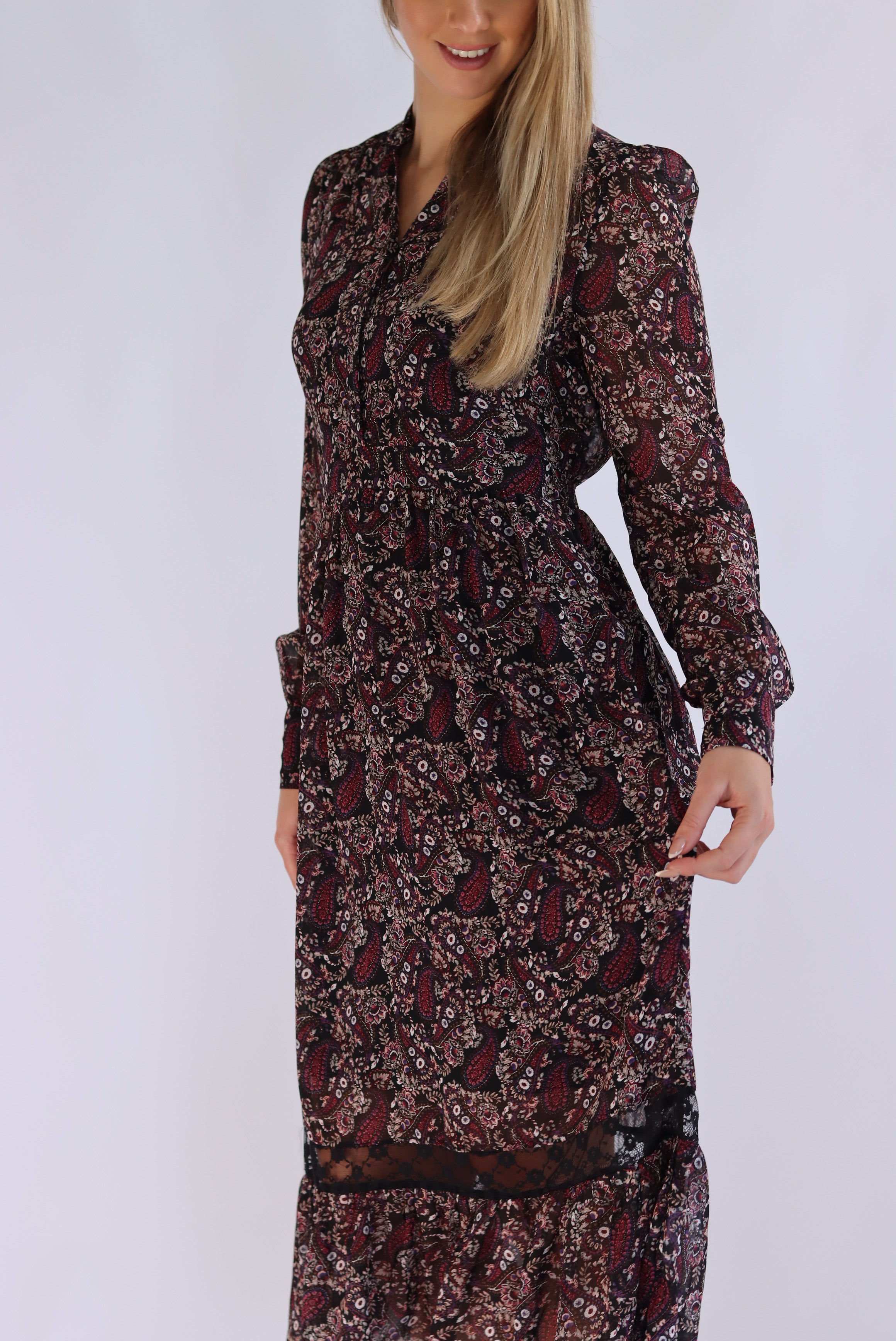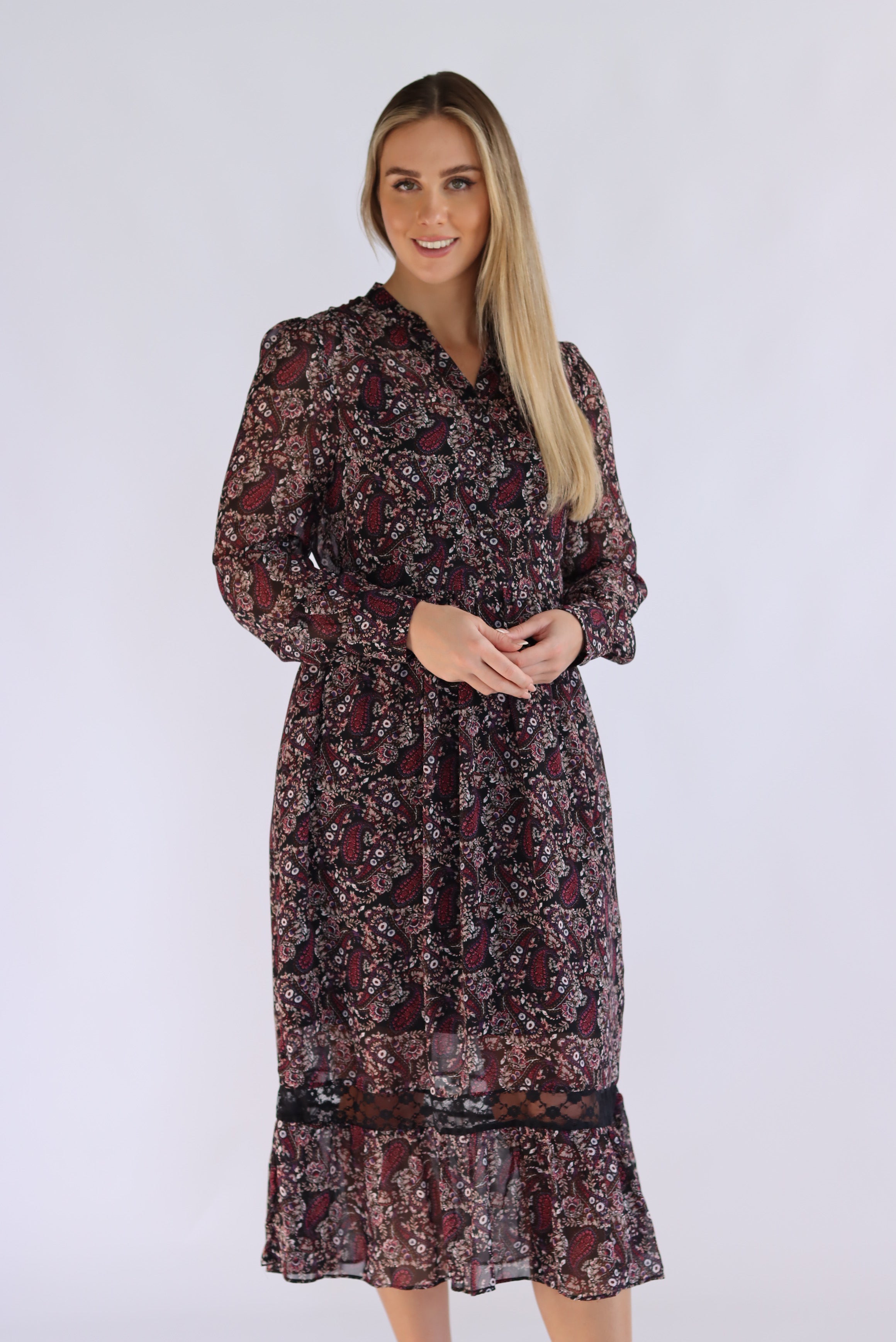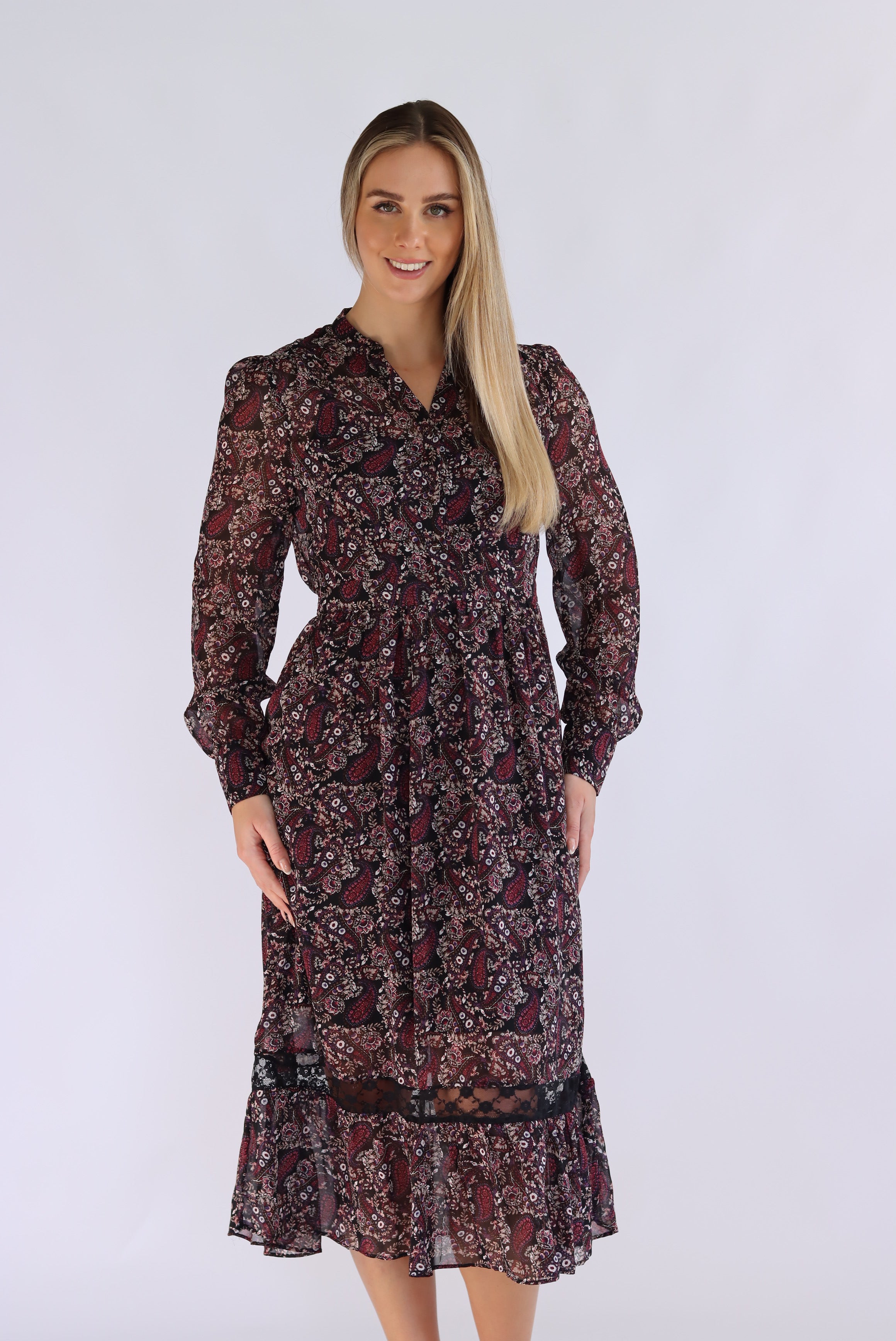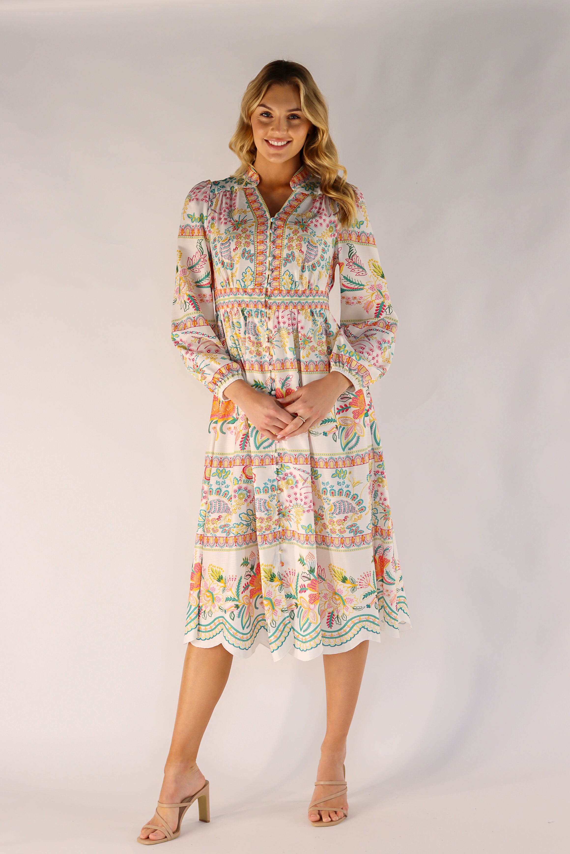 Diona Full-Sleeve Floral Midi Dress