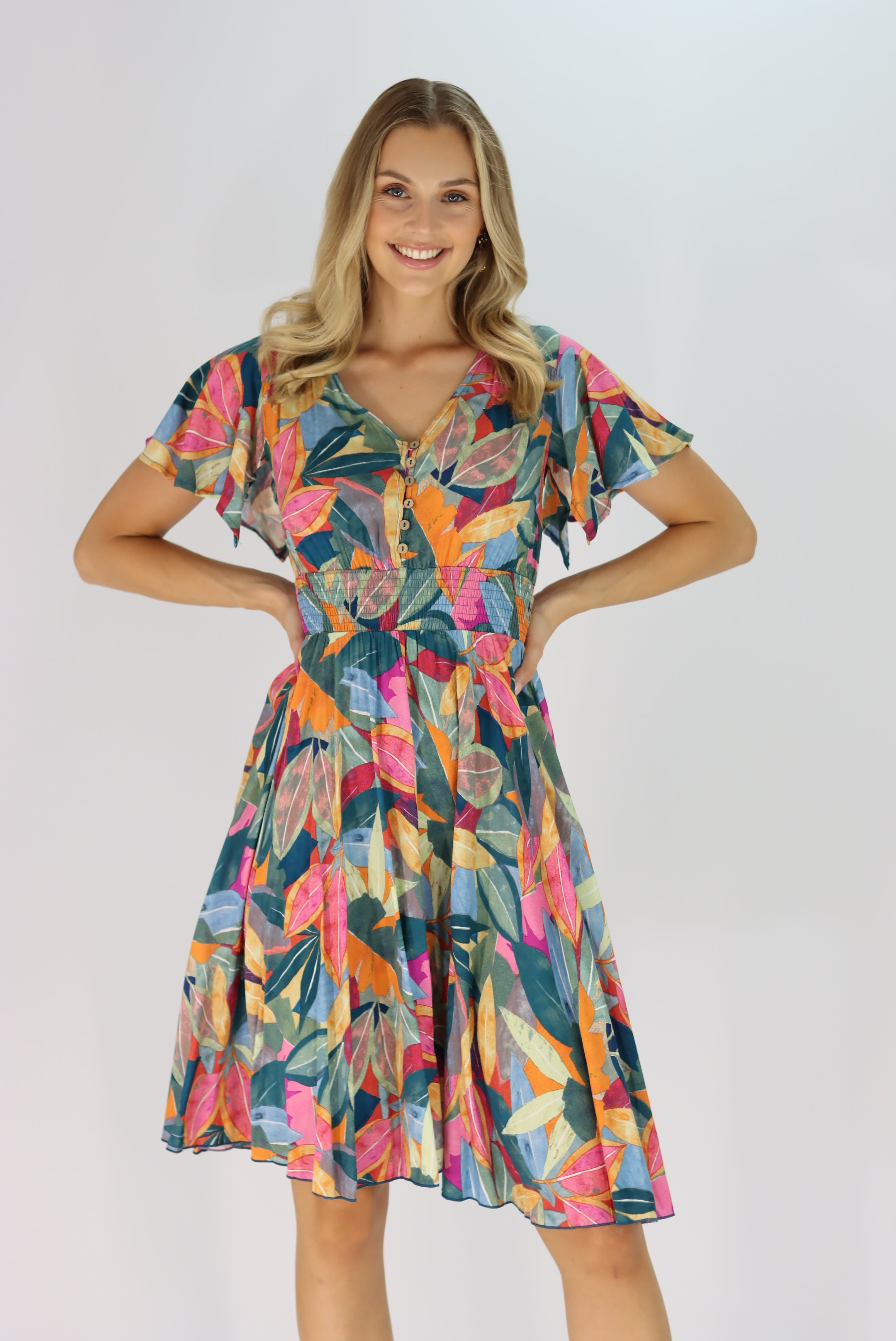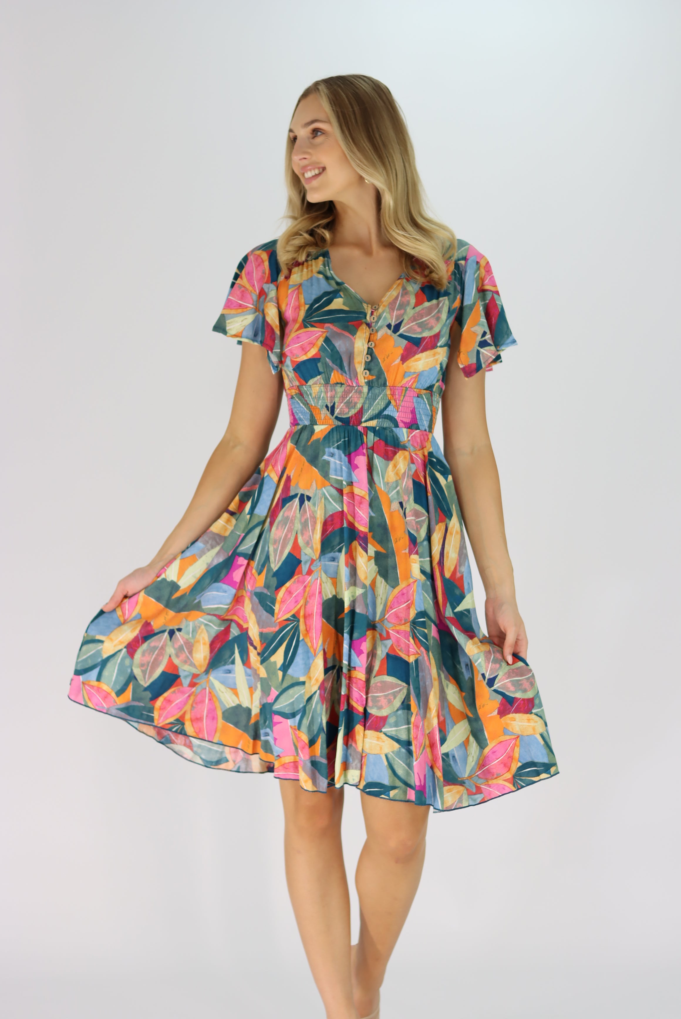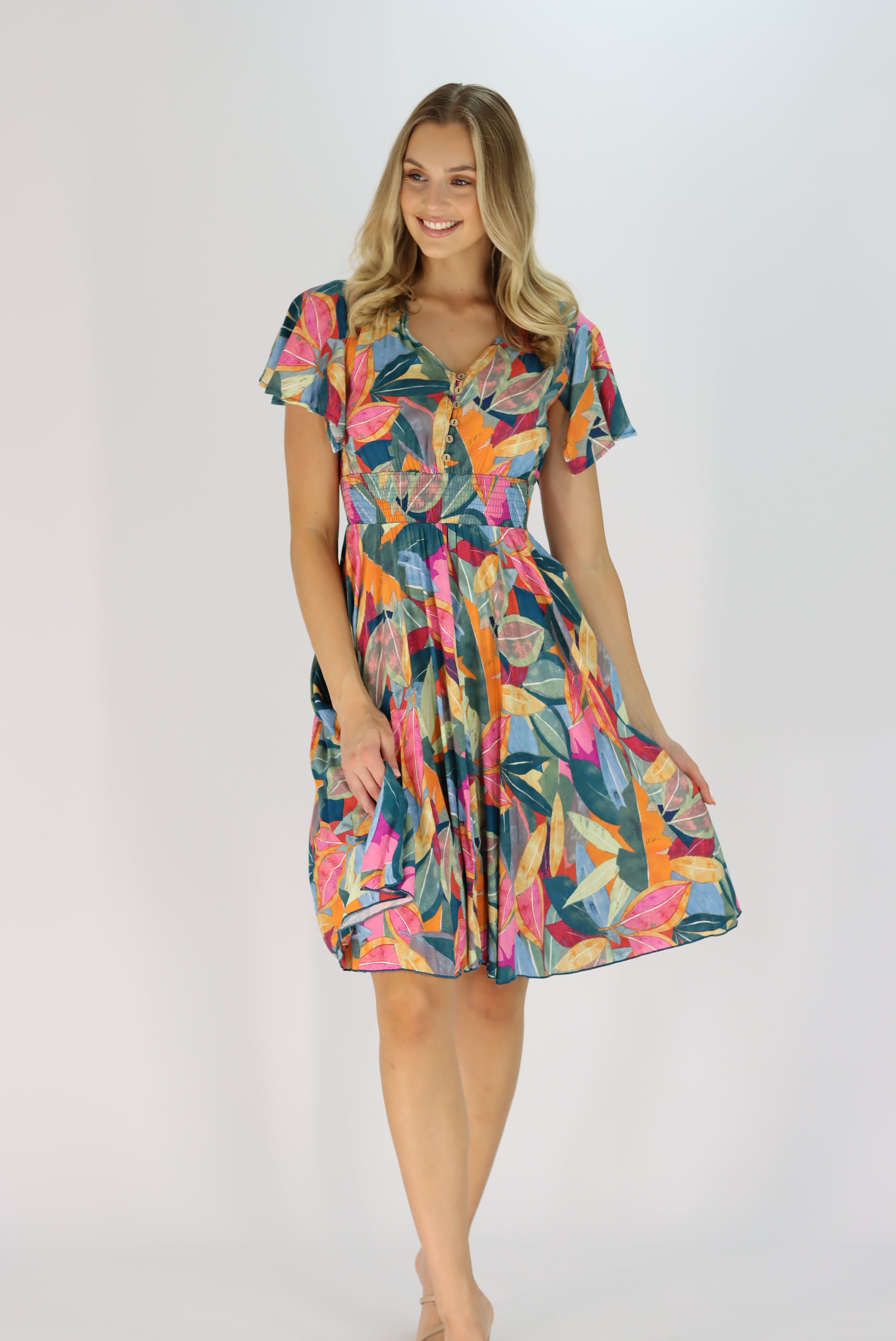 Anaya Multi Colour Leaf Dress