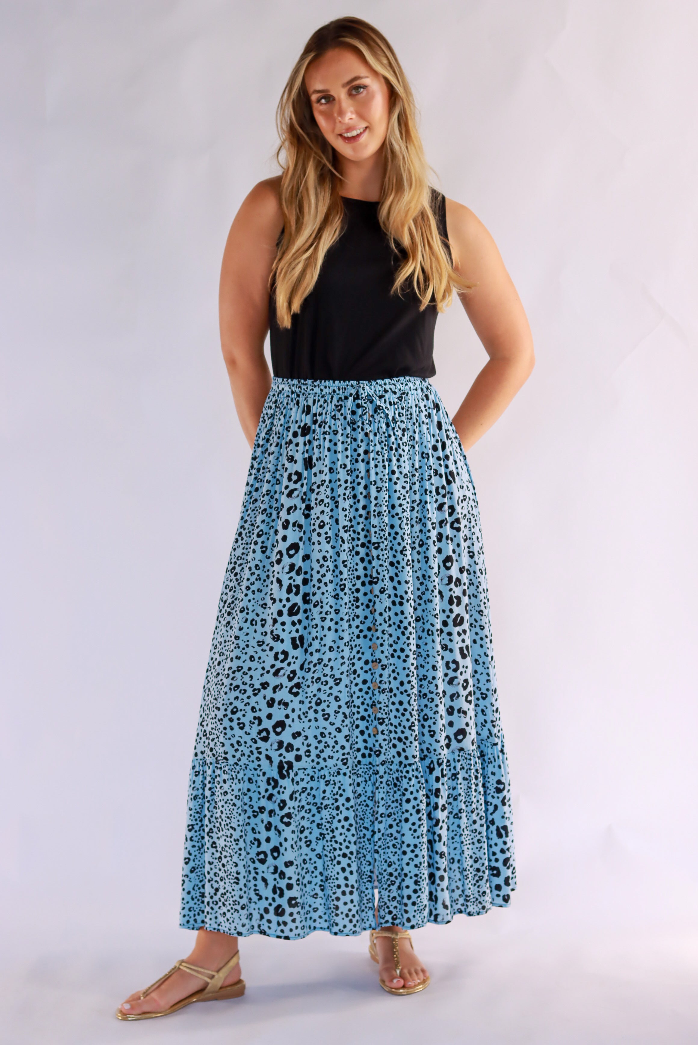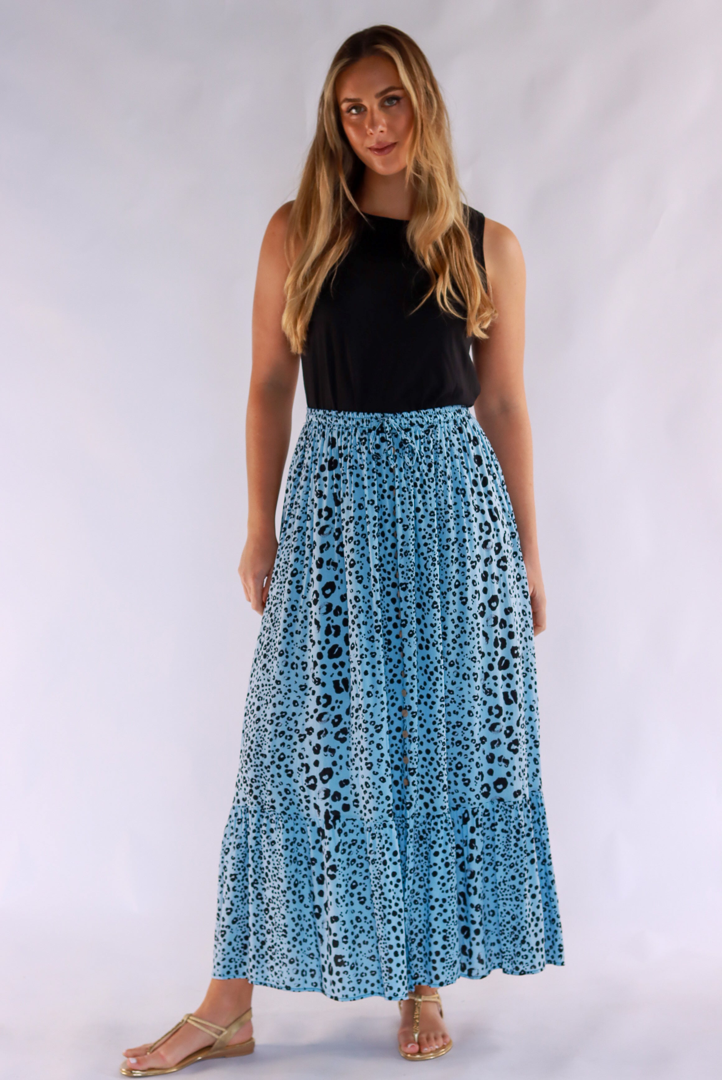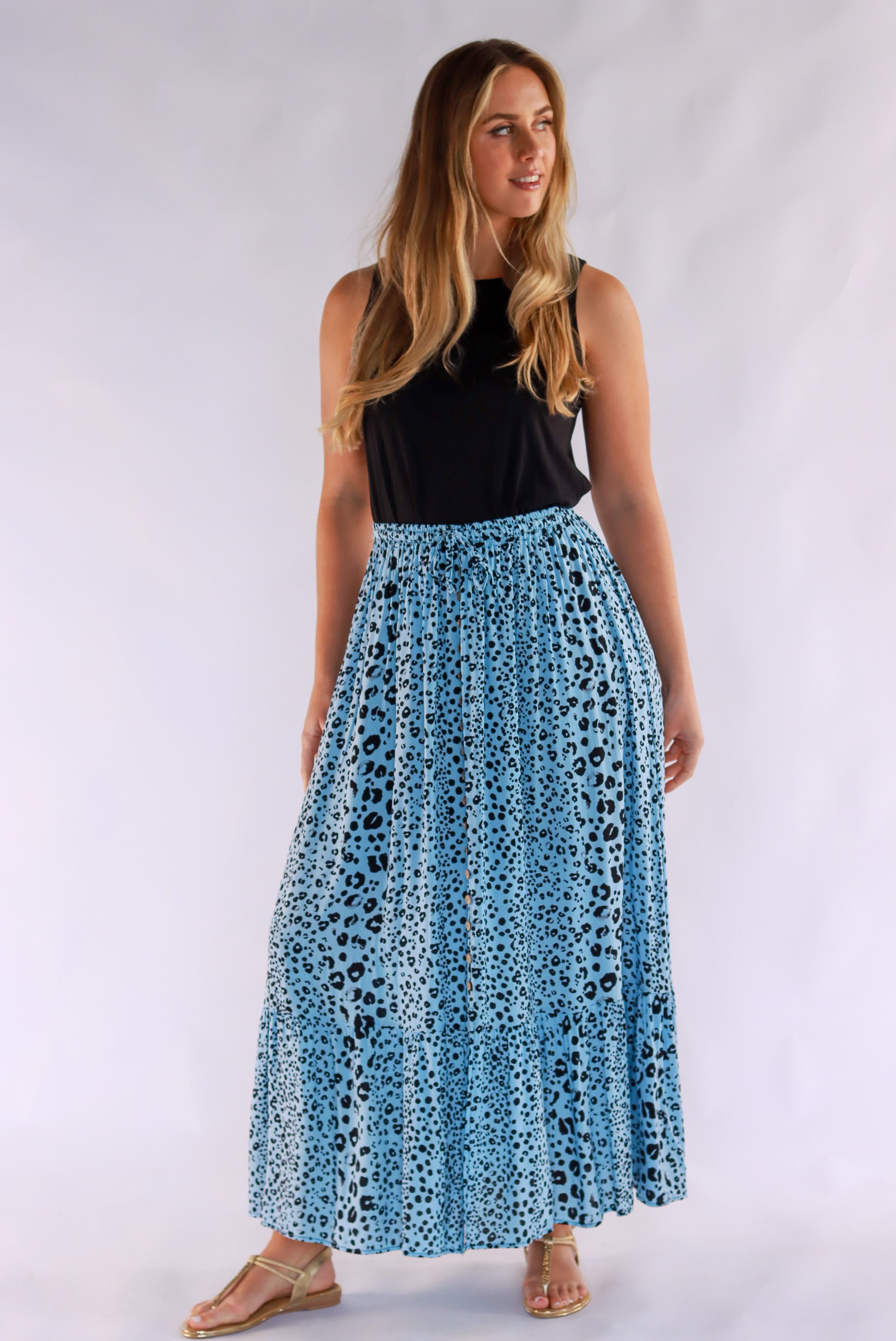 Penny Leopard Maxi Skirt In Blue