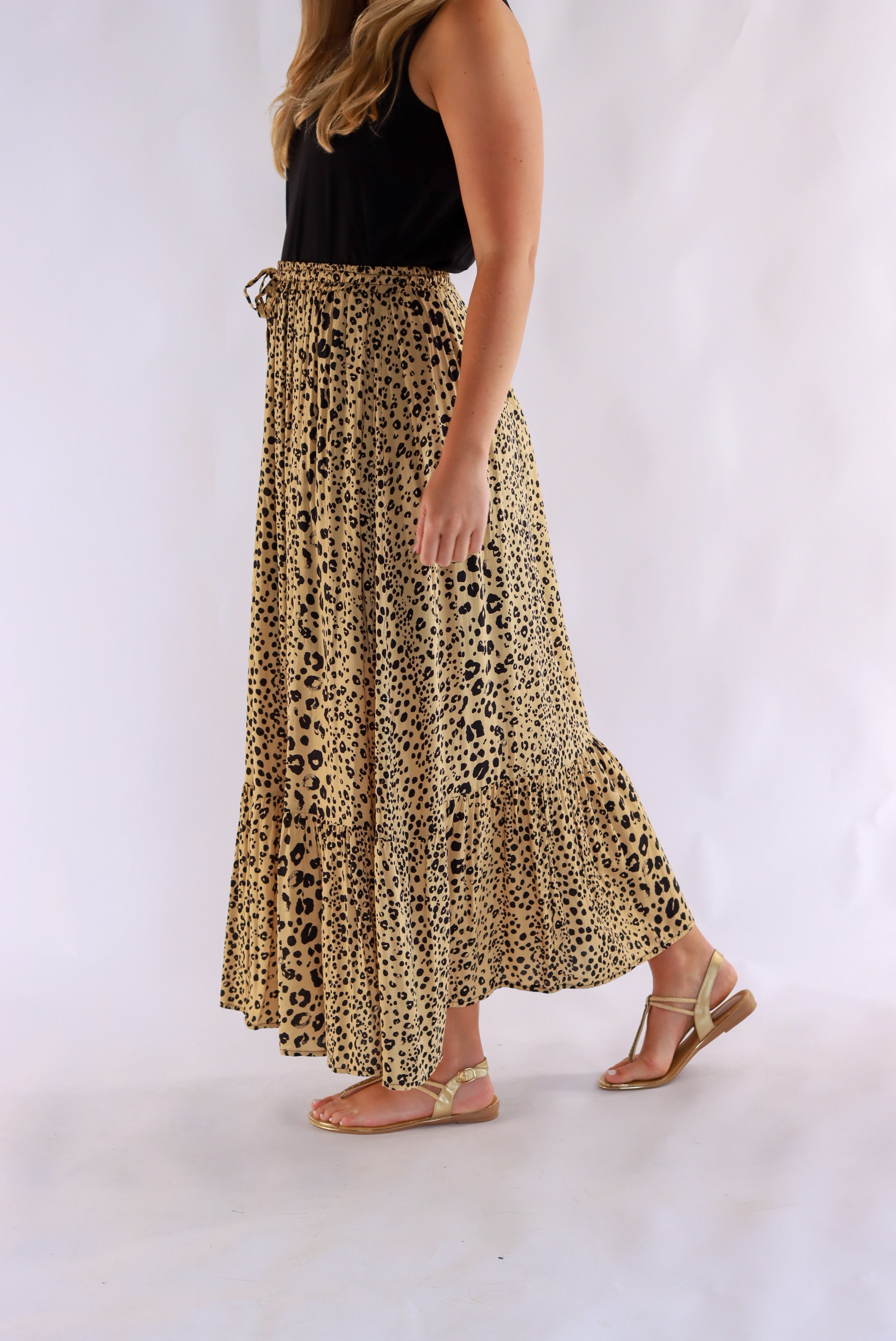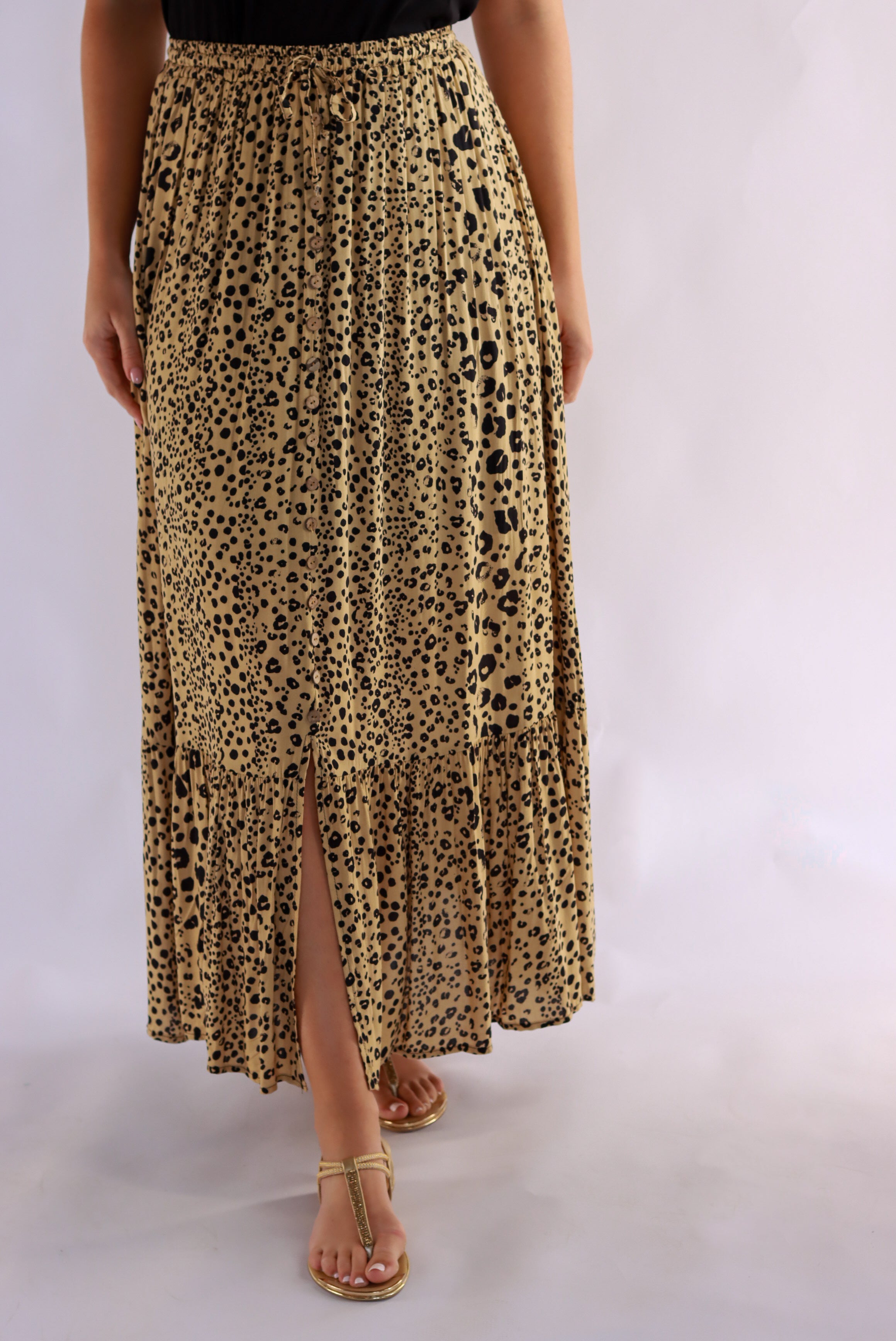 Penny Leopard Maxi Skirt In Dark Beige