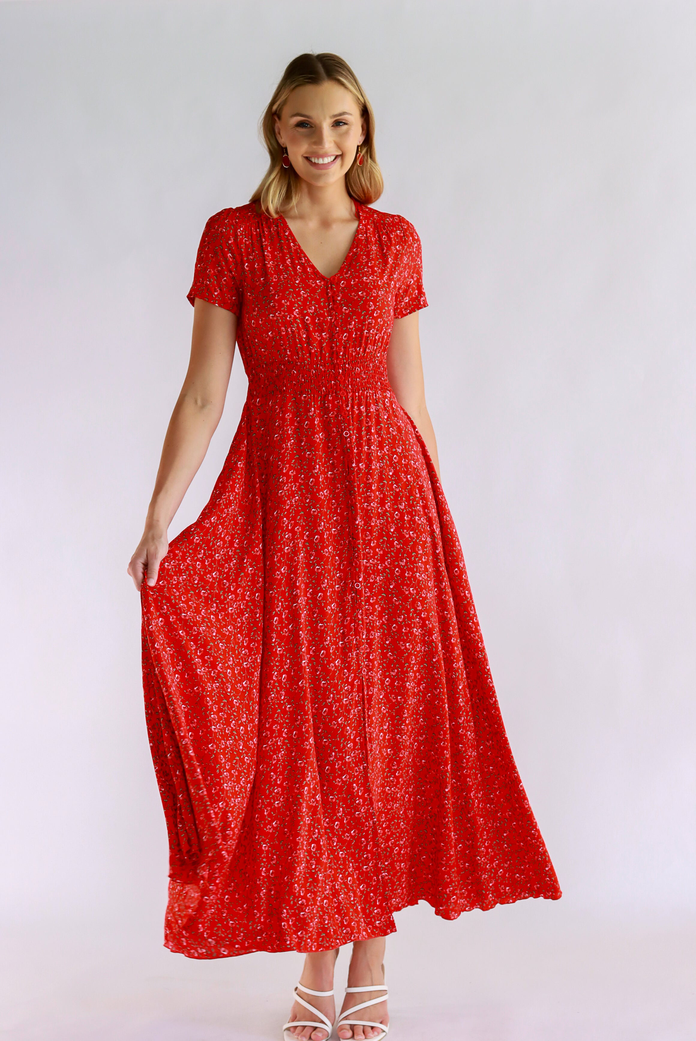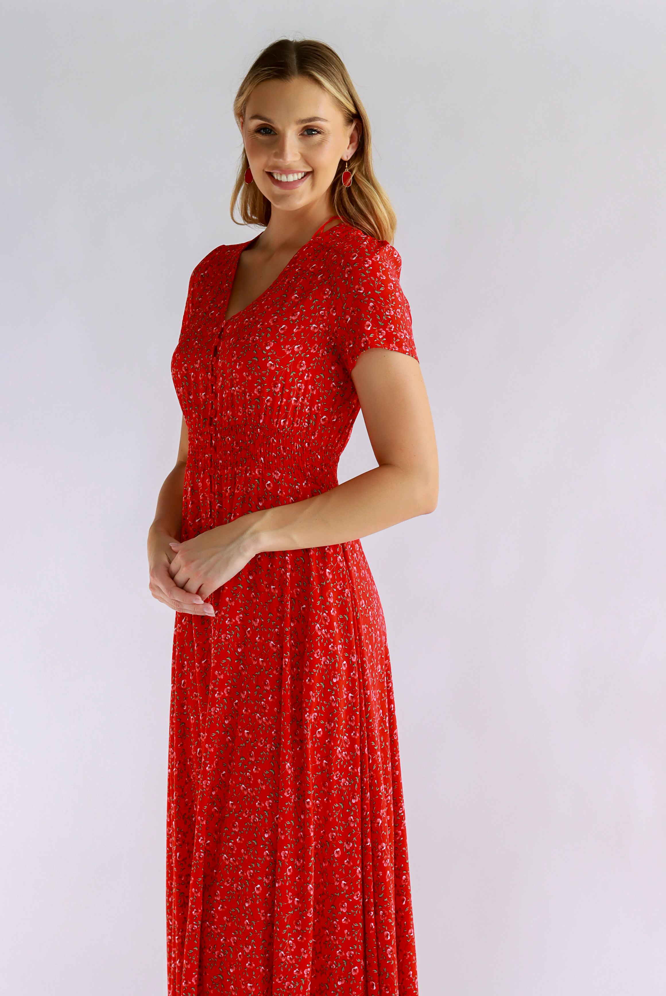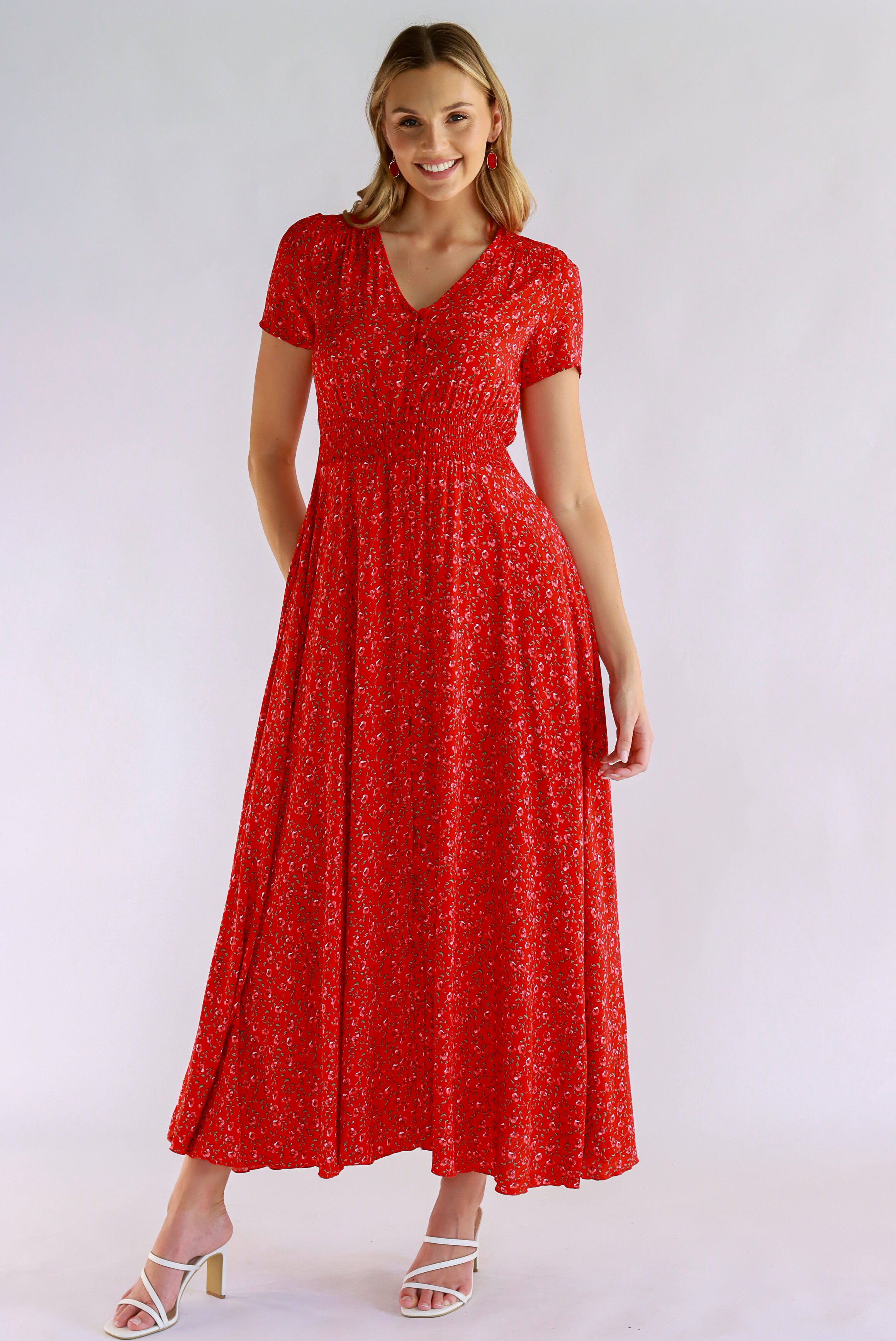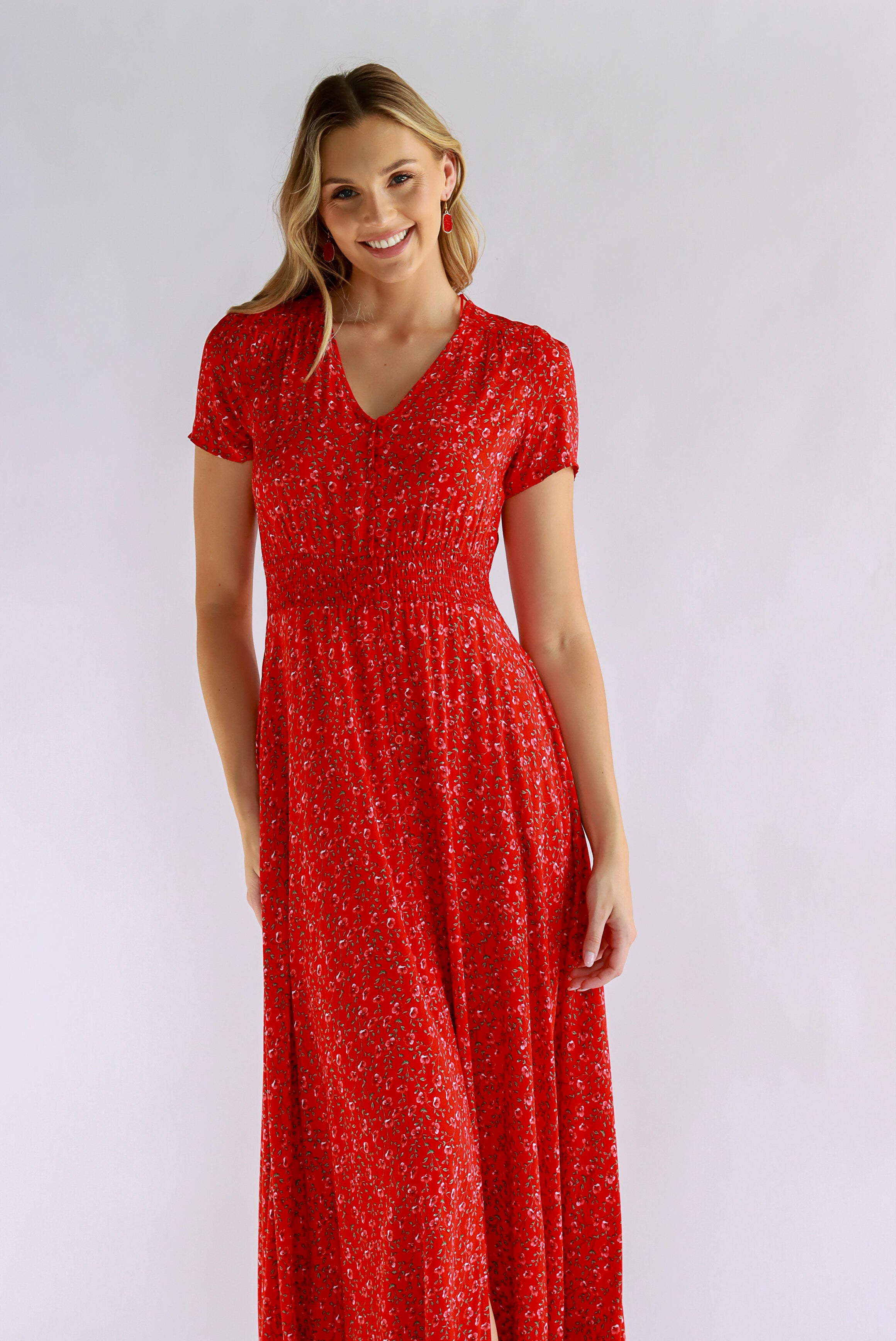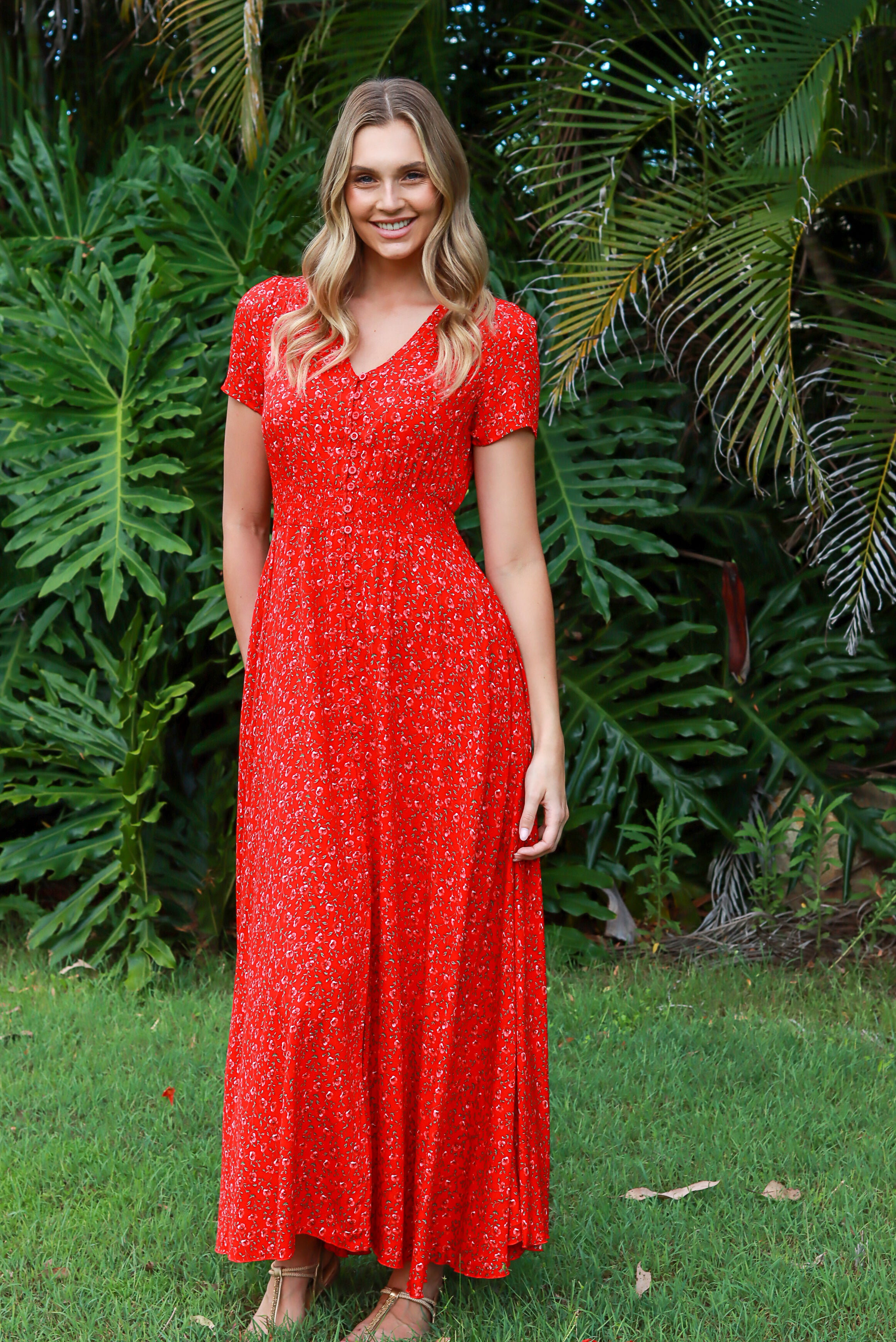 Dahlia Floral Red Maxi Dress