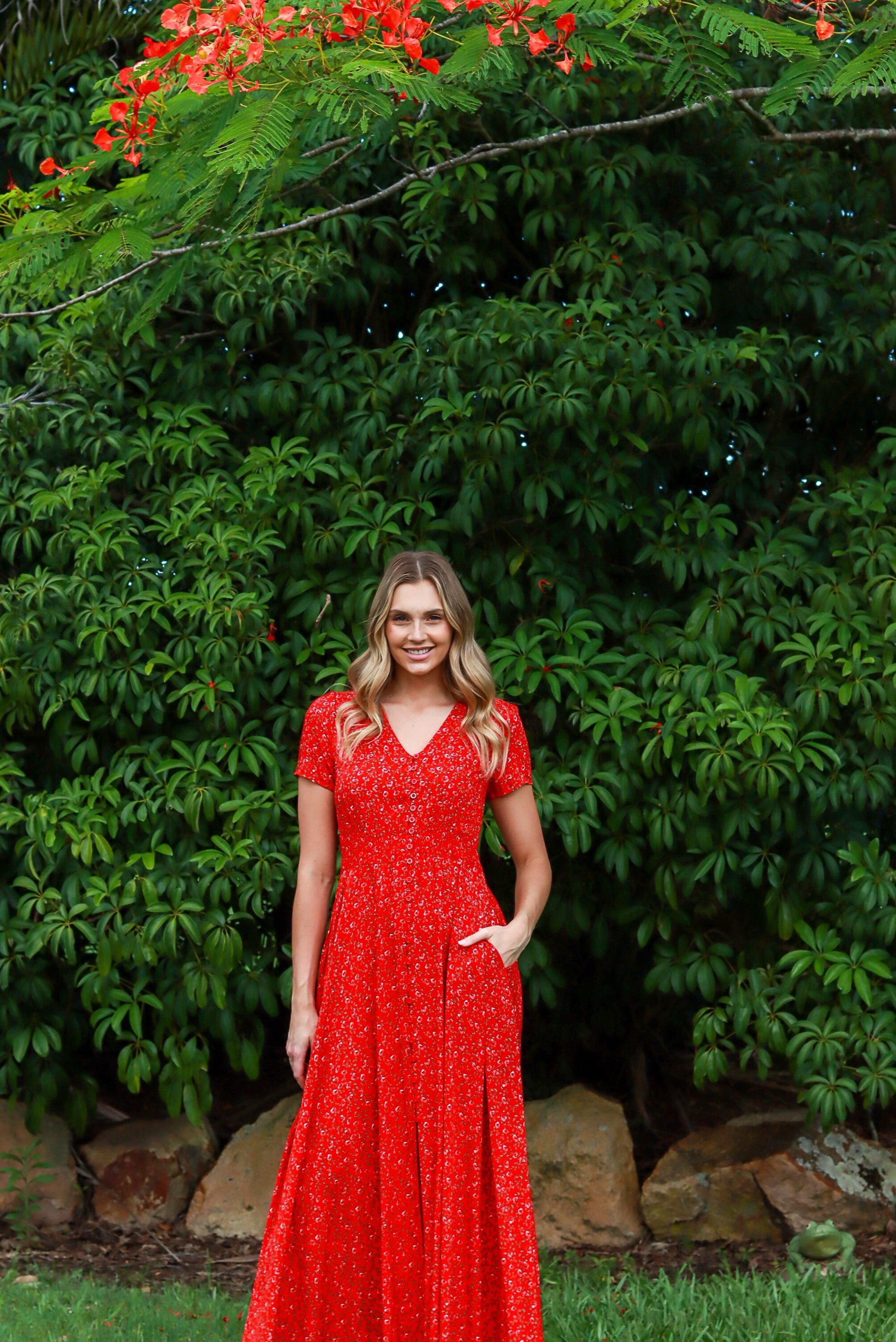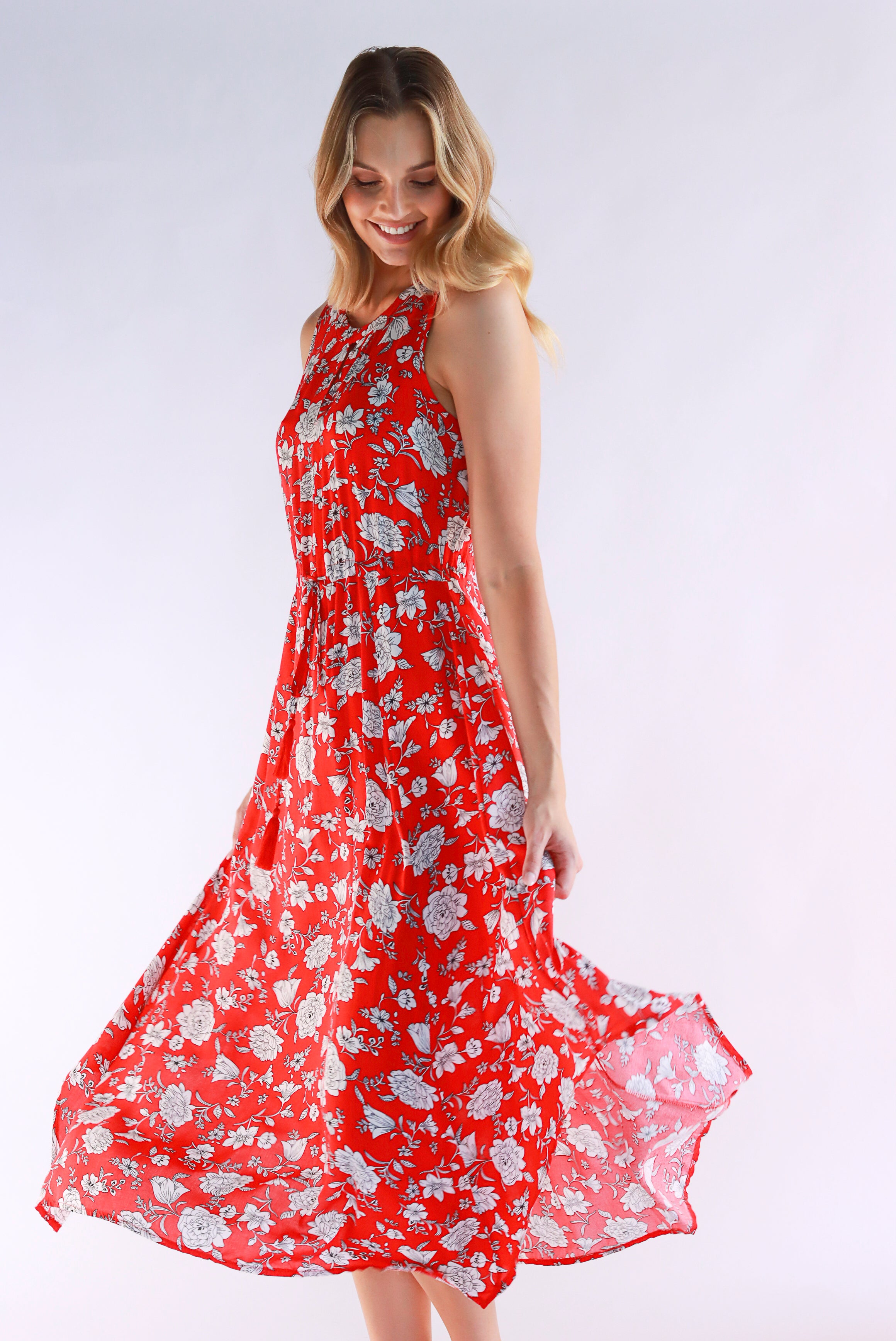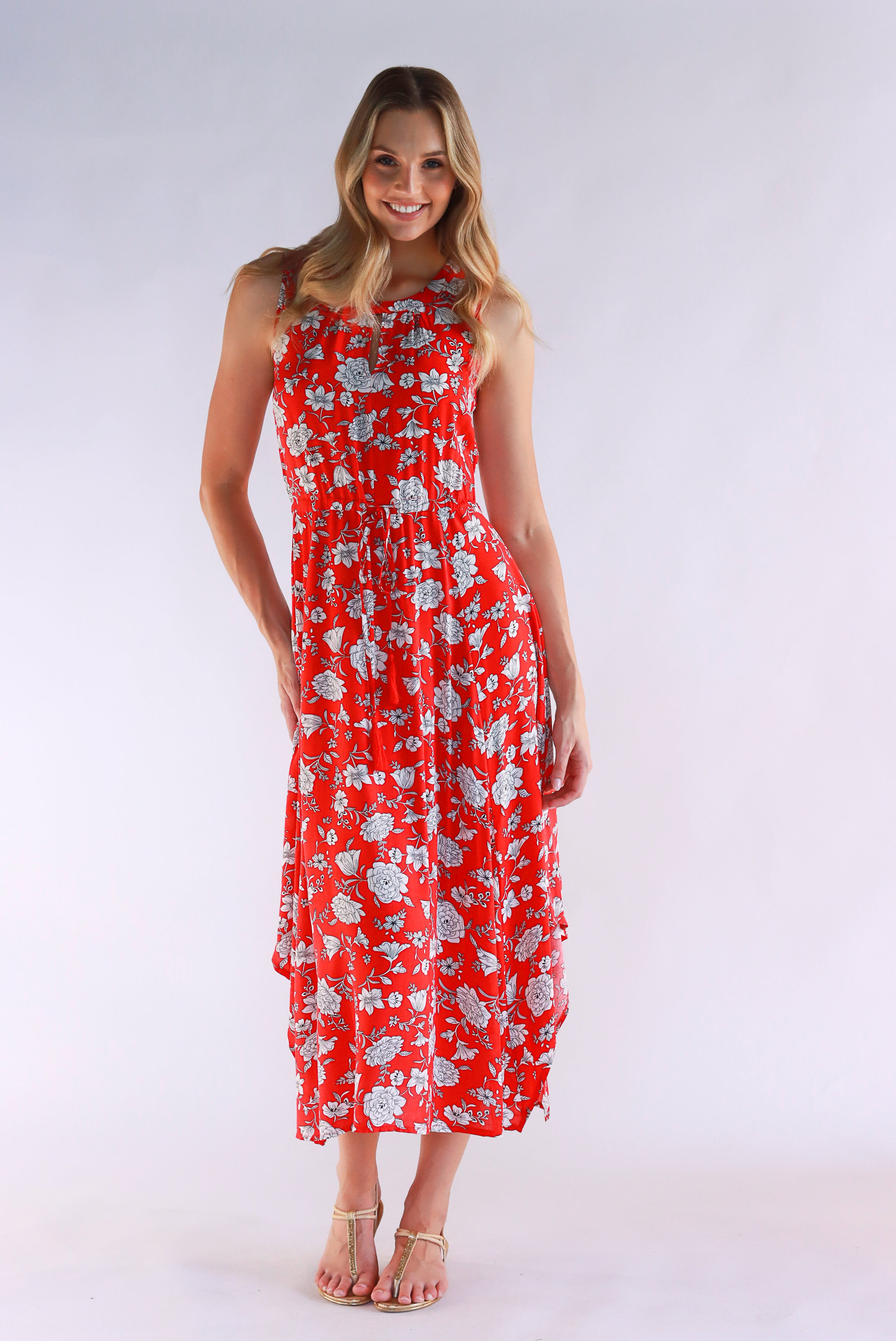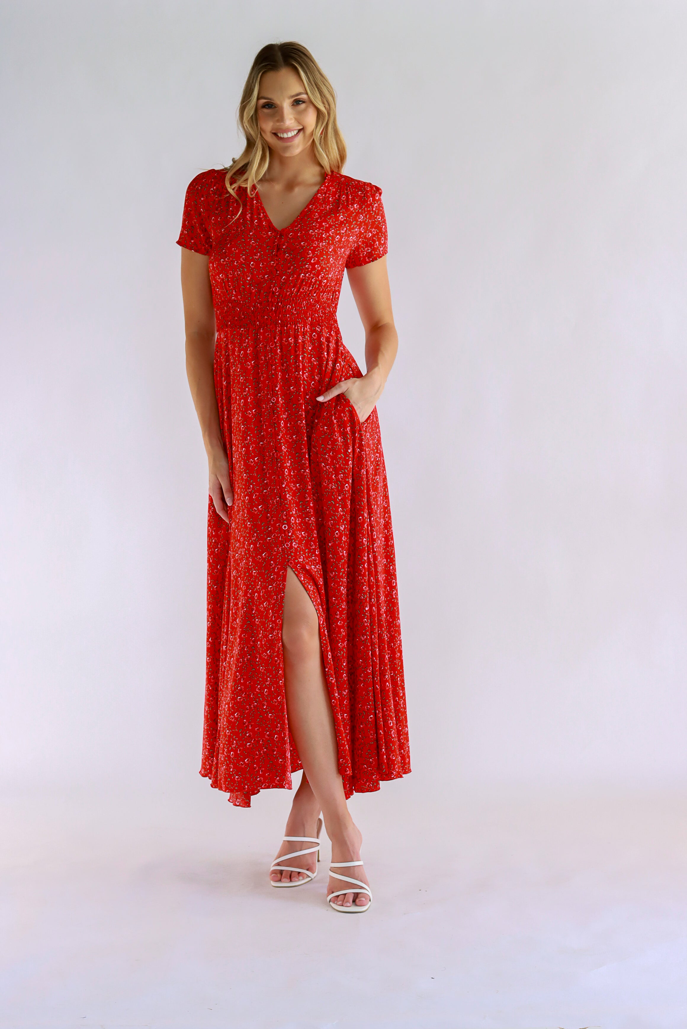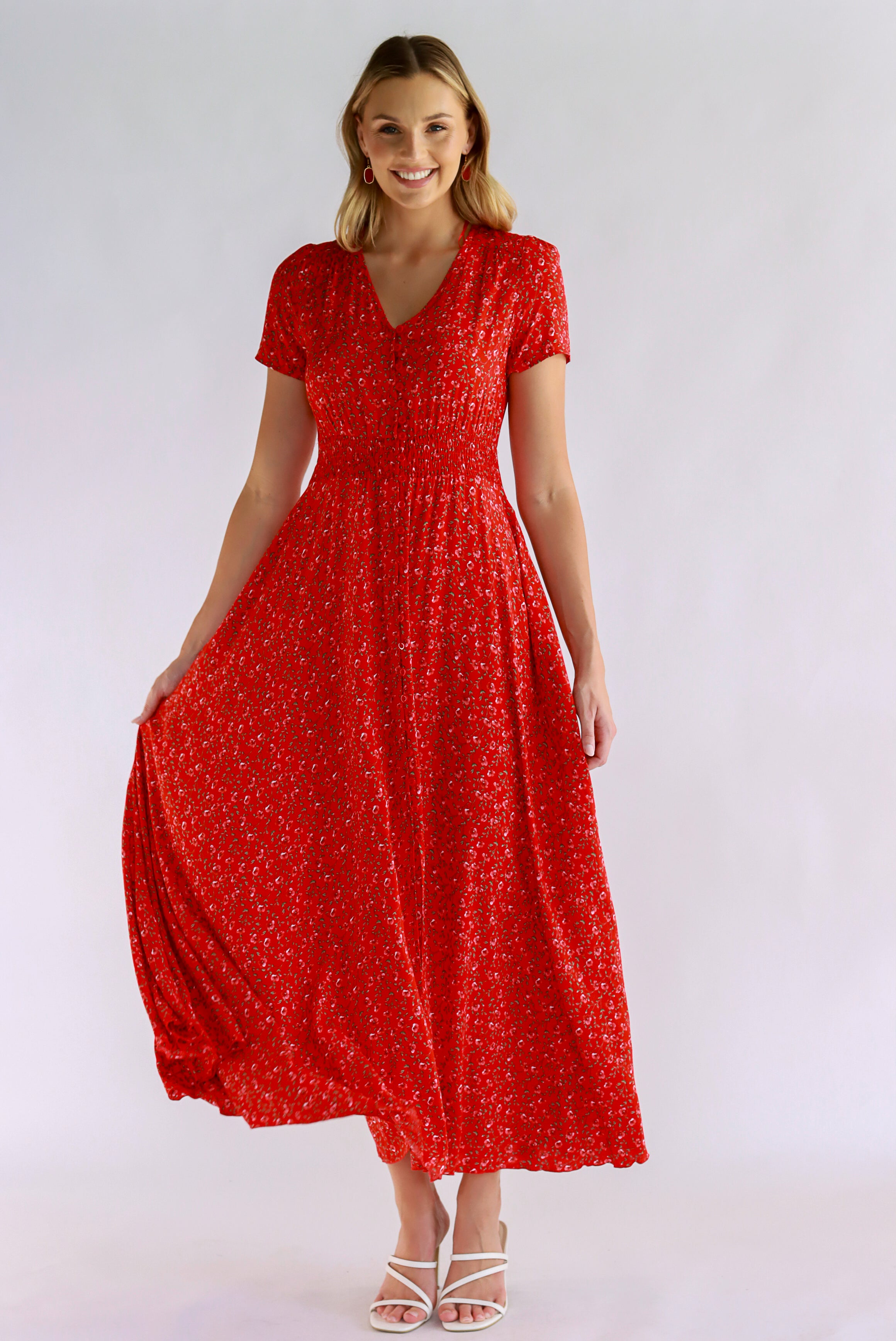 Dahlia Floral Red Maxi Dress