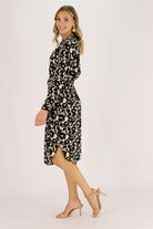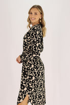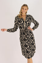 Introducing the Mihva Midi Dress: a versatile addition to your wardrobe. With its feminine style, this dress is perfect for both casual and work wear. Made with lightweight material, it also features functional side pockets for your convenience. Layer it with a black cardigan for colder days. Elevate your style and comfort with this dress.