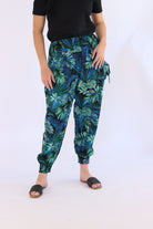 Experience effortless elegance with the Blue Leaf Print Harem Pants, designed in a relaxed fit to ensure ease of movement and all-day comfort. Featuring shirred elastic on the waistband and cuffs, these pants blend style with stretch. Practical side pockets with subtle string details add a refined touch. Crafted from breathable, lightweight fabric, they provide year-round versatility, making them perfect for daily wear, yoga, or leisurely strolls.