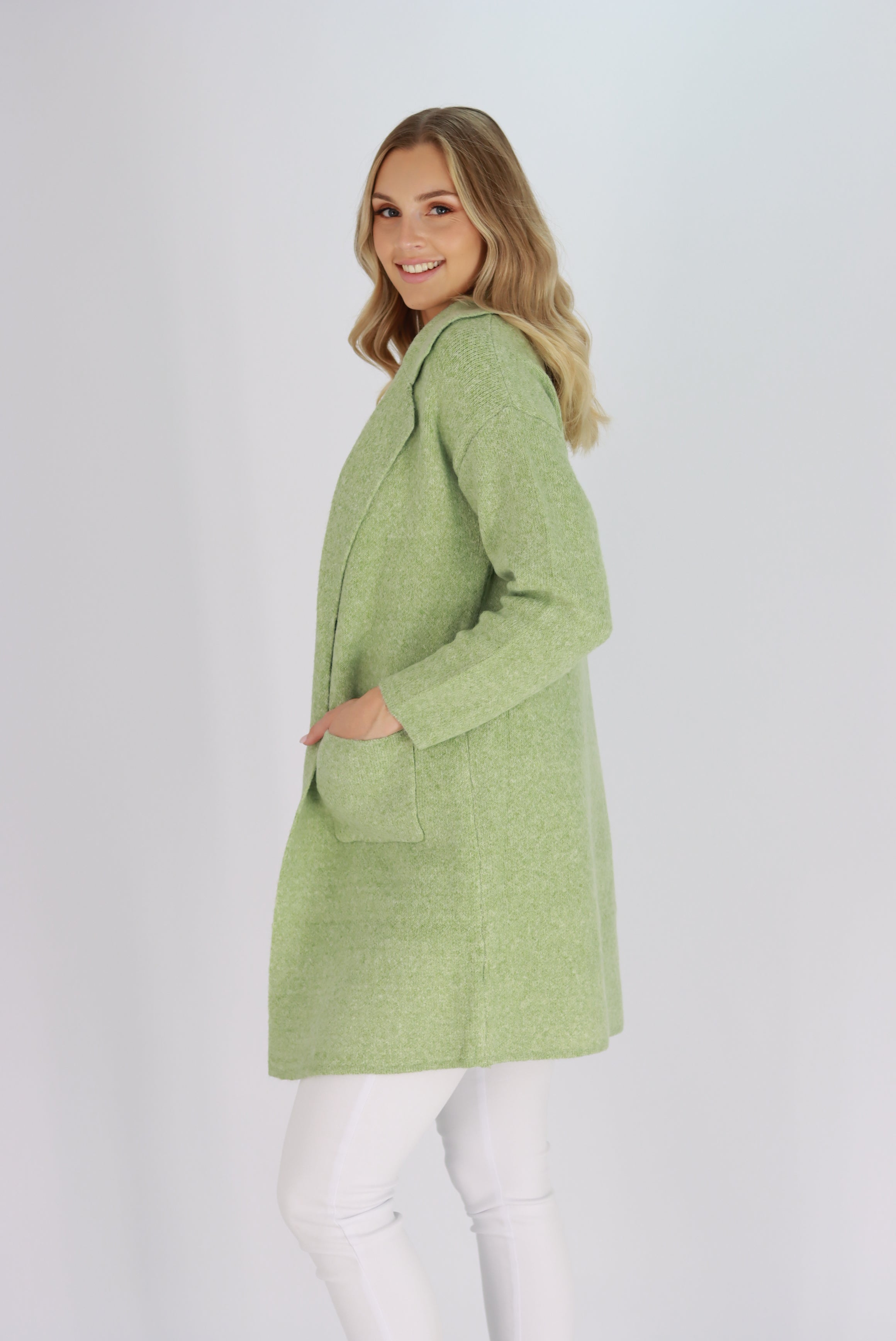 Kimberley knit Coatigan In Pastel Green