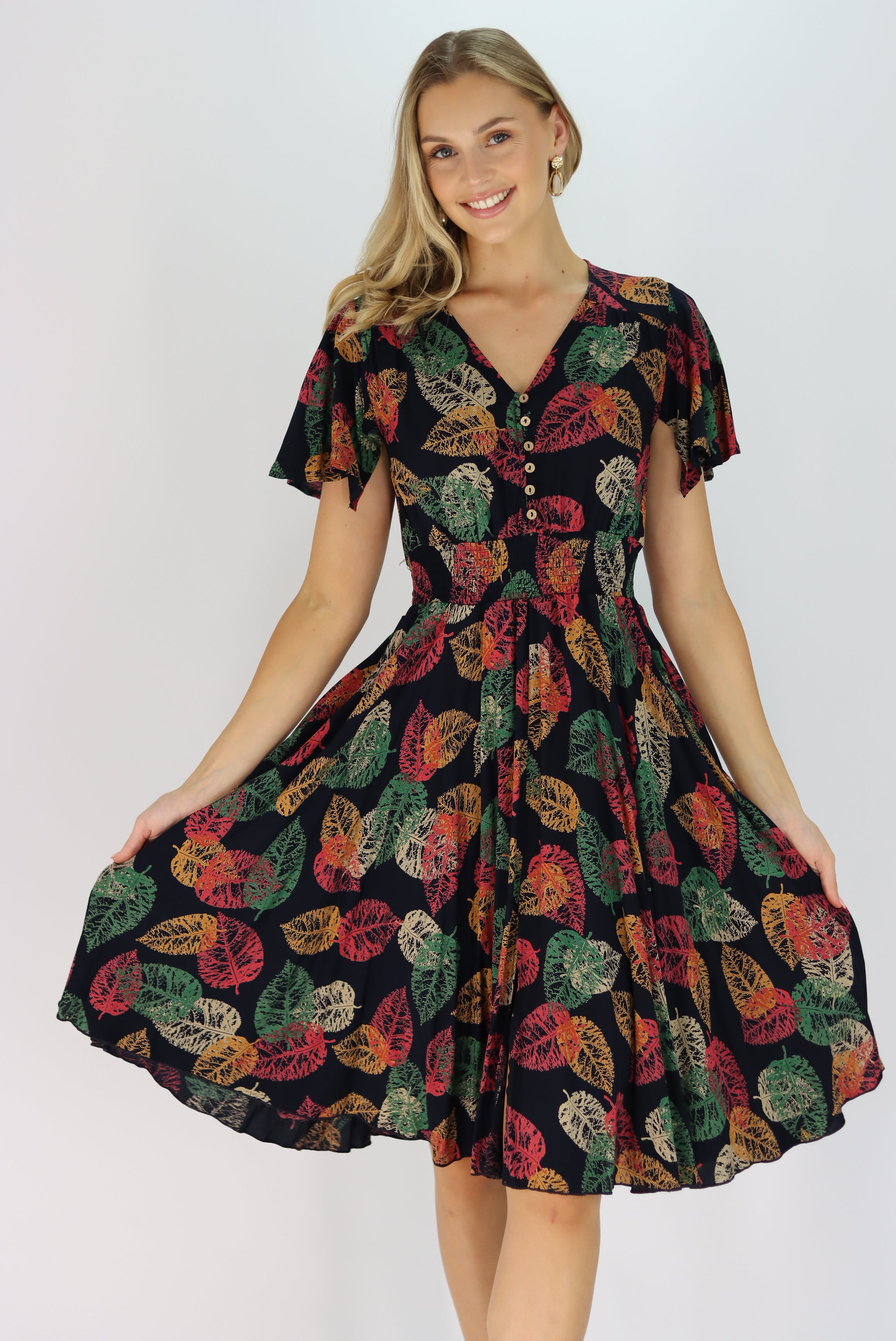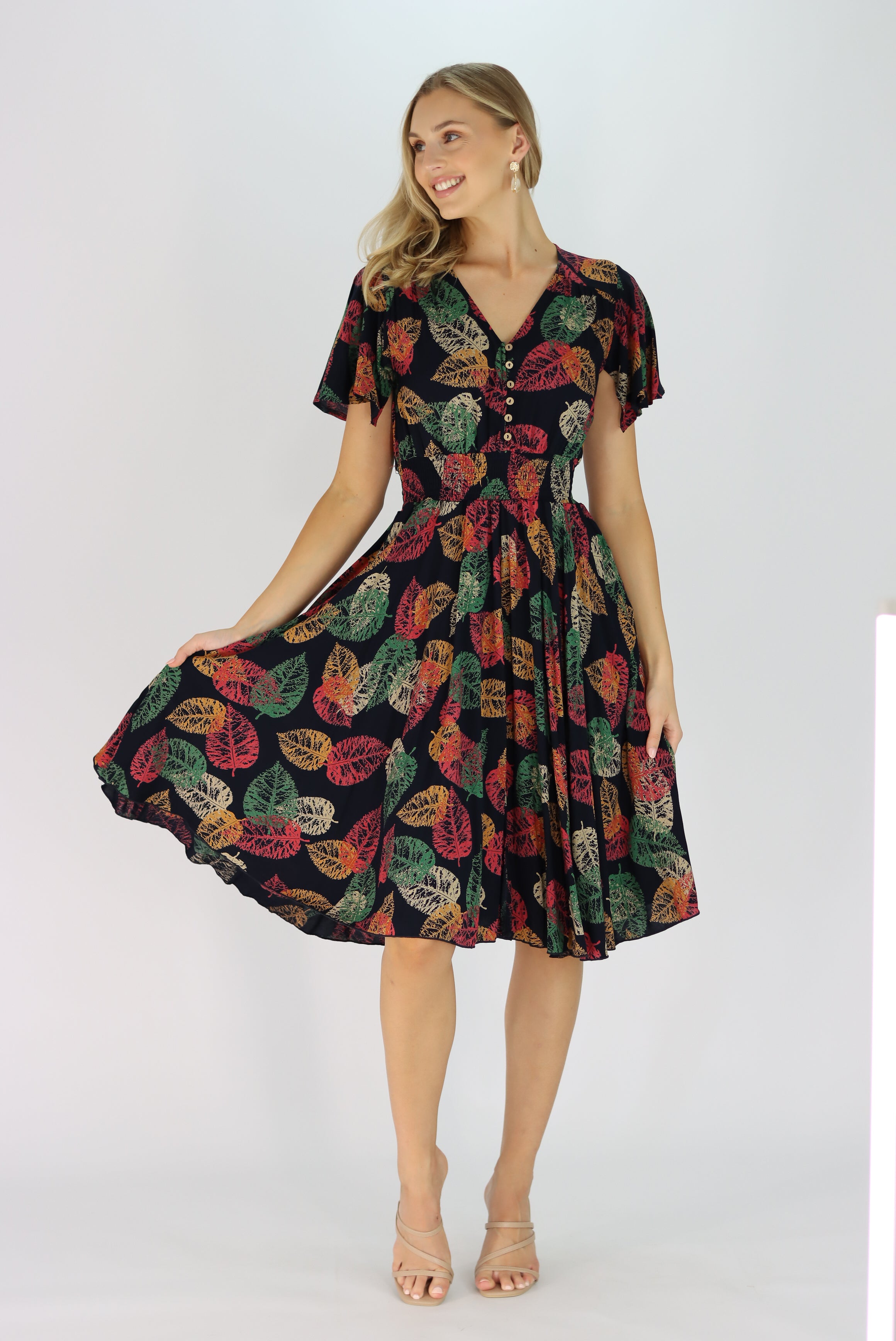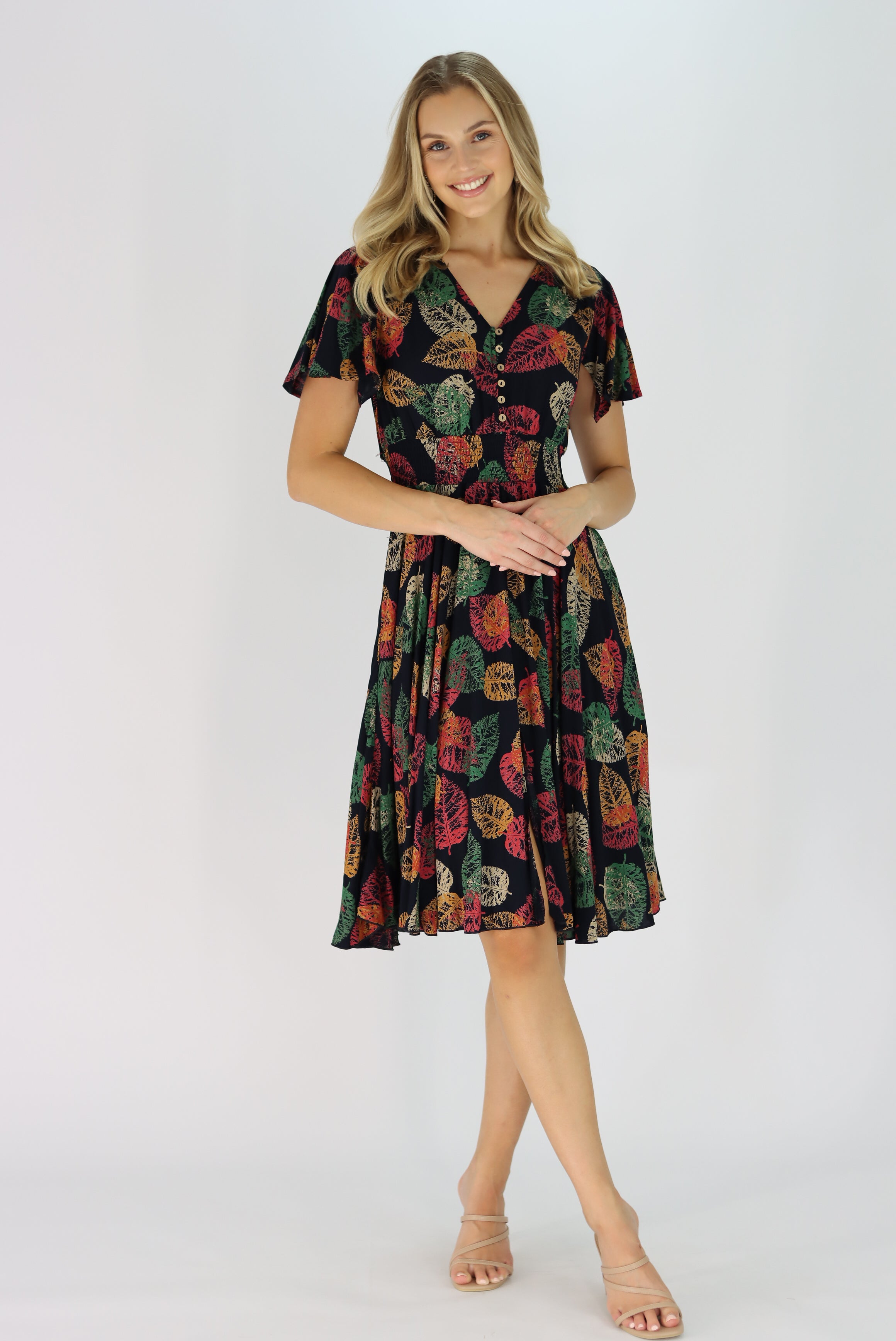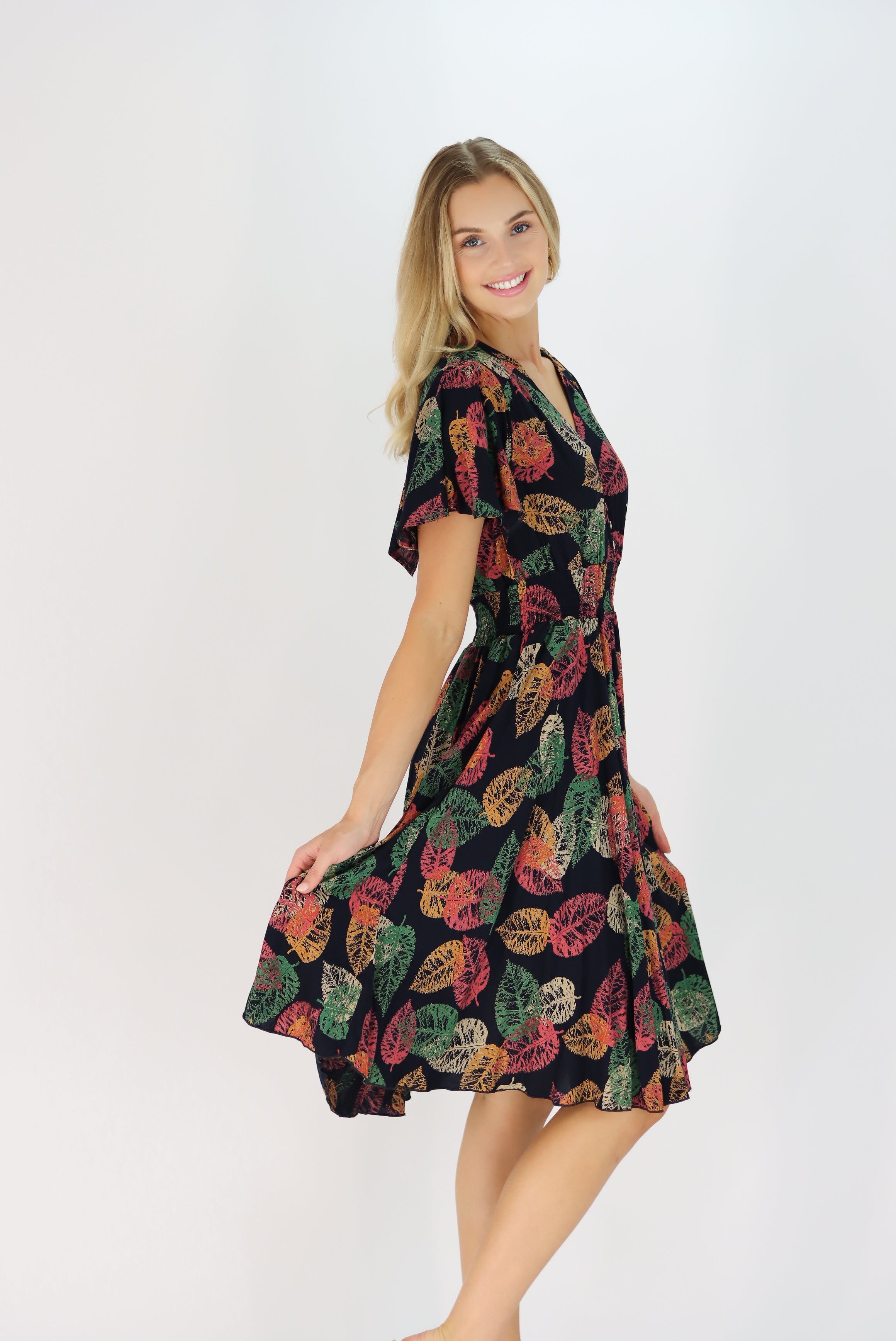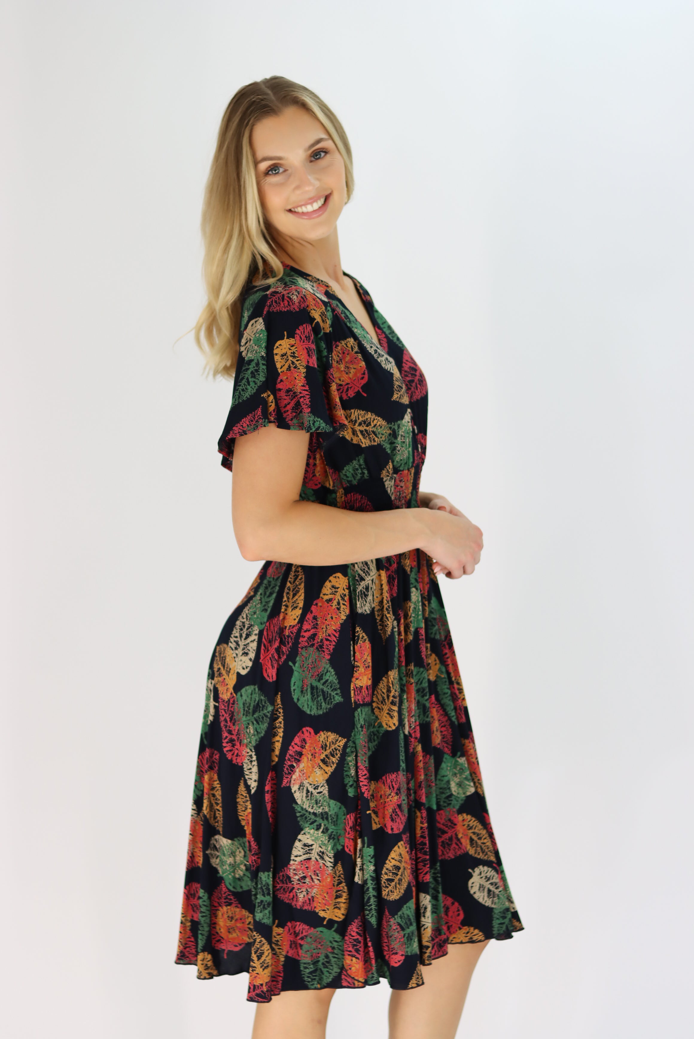 Leonora Dress in Leaf Print
