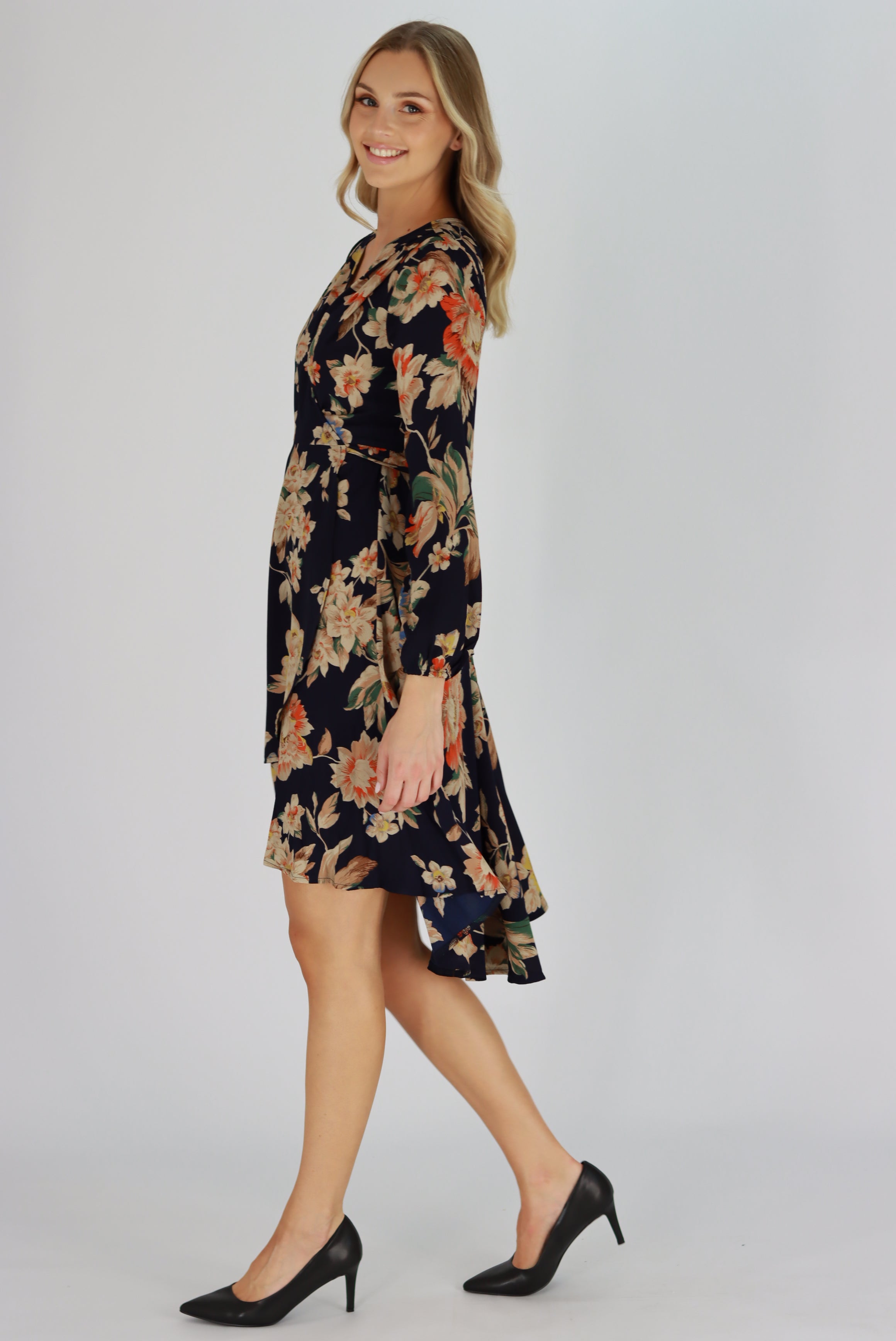 Lucia Floral Dress In Navy