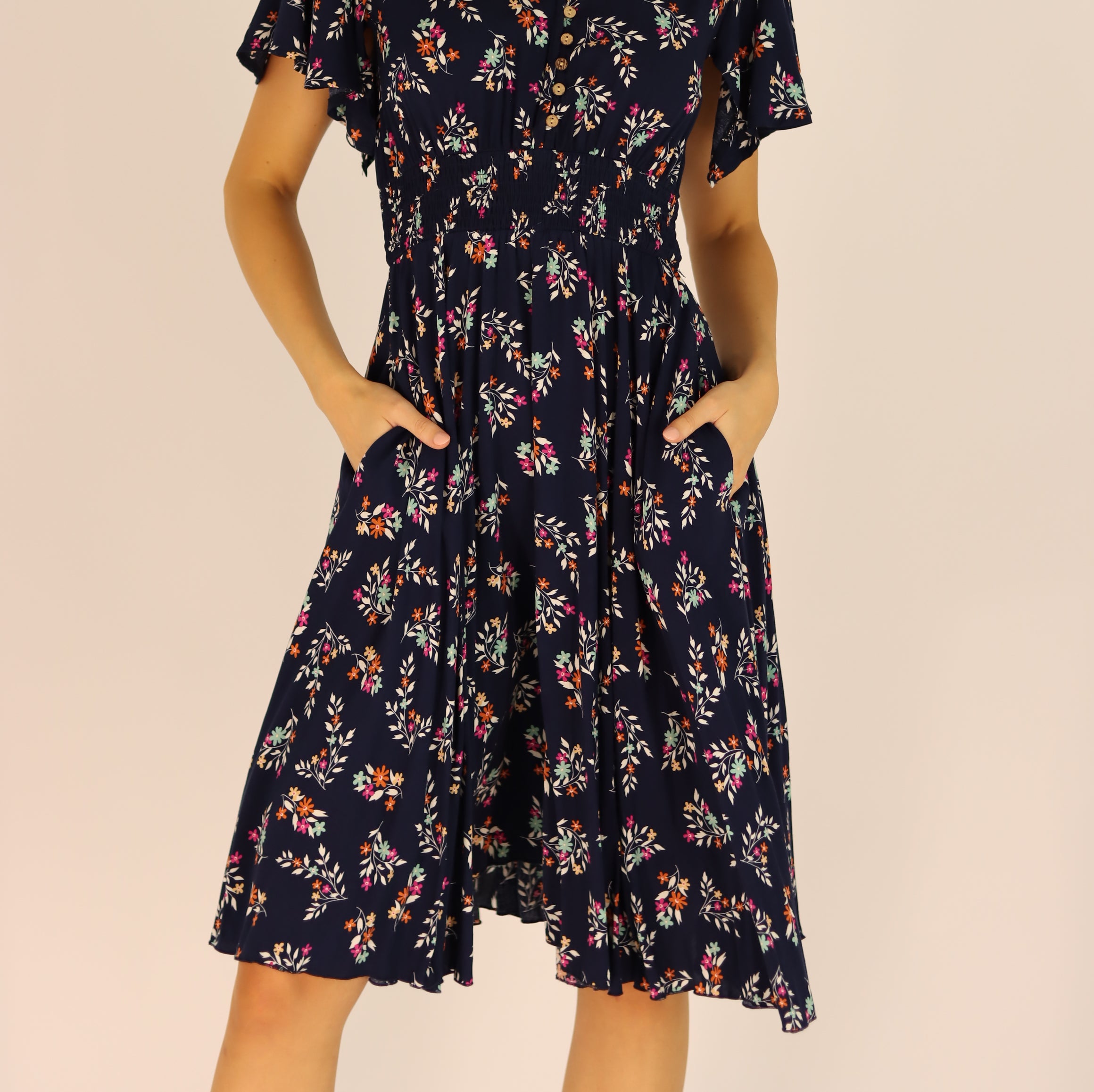 Mariella Floral Dress in Navy