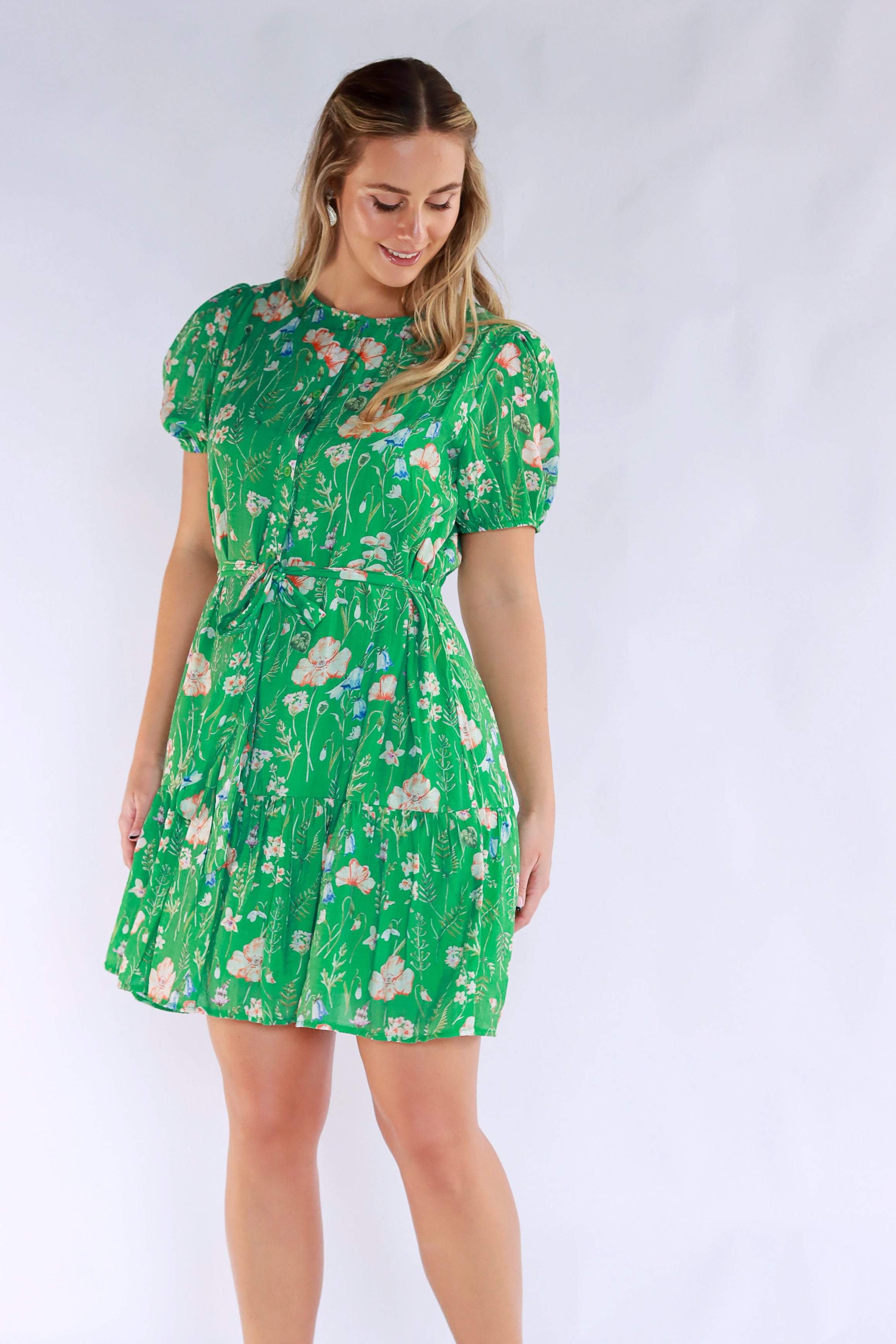 Adrianna Floral Mini Dress In Green