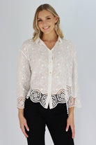Our Paris Love Lace Top is made from organic cotton fabric, providing both style and sustainability. This designer top features intricate applique work, giving it an elegant look that can be dressed up with black for formal meetings or paired with denim or shorts for a more casual look. Versatile and eco-friendly, this top is a must-have for any fashion-forward individual.